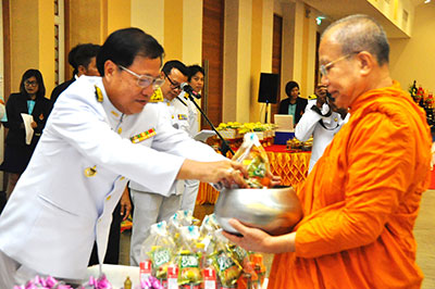 ผู้ช่วยศาสตราจารย์ไพศาล บุรินทร์วัฒนา อธิการบดี พร้อมด้วยผู้บริหาร คณาจารย์ เจ้าหน้าที่ และนักศึกษา มหาวิทยาลัยเทคโนโลยีราชมงคลสุวรรณภูมิ ร่วมพิธีประกาศราชสดุดีเฉลิมพระเกียรติและถวายพระพรชัยมงคล และทำบุญตักบาตรข้าวสารอาหารแห้ง เนื่องในโอกาสวันเฉลิมพระชนมพรรษาสมเด็จพระนางเจ้าสิริกิติ์ พระบรมราชินีนาถ พระบรมราชชนนีพันปีหลวง เพื่อแสดงความจงรักภักดีและถวายเป็นพระราชกุศล ณ หอประชุมพระพิรุณ ระลึกโปรดเกล้า มทร.สุวรรณภูมิ ศูนย์พระนครศรีอยุธยา หันตรา