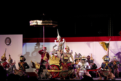 “ด้วยคติความเชื่อที่ว่าพระมหากษัตริย์ผู้เป็นดั่งสมมติเทพ อันหมายถึง พระมหากษัตริย์ทรงเป็นเทพลงมาอวตารเพื่อปกครองมวลมนุษย์ นั้น สาขาวิชานาฏศิลป์ฯ จึงพิจารณาชุดการแสดงโขนผู้หญิงประจำปีนี้ เป็นชุดการแสดงที่กล่าวถึงพระเกียรติยศของพระมหากษัตริย์ ว่าด้วยเรื่องการอวตารและการปราบอสูร โดยเล่าเรื่องตั้งแต่พระนารายณ์อวตารลงมาเป็นพระรามเพื่อมาปราบทศกัณฐ์ ไปถึงชนวนเหตุแห่งสงครามเมื่อทศกัณฐ์มาลักพาตัวนางสีดามเหสีของพระราม จนพระรามและพระอนุชาต้องติดตาม จนได้พบกองทัพวานรที่เข้ามาสวามิภักดิ์และช่วยปราบทศกัณฐ์ได้สำเร็จ เป็นการเรียงร้อยเรื่องรามเกียรติ์แบบกระชับ ผ่านตอนสั้น ๆ ดูแล้วเข้าใจง่าย ภายในเวลา 2 ชั่วโมง”นายขรรค์ชัย กล่าว