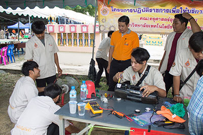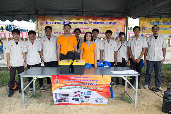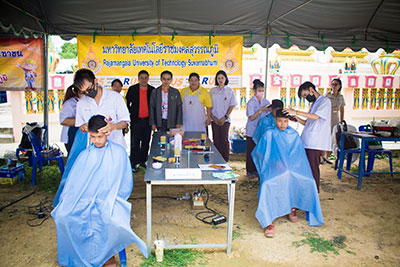 คณะครุศาสตร์อุตสาหกรรม มหาวิทยาลัยเทคโนโลยีราชมงคลสุวรรณภูมิ นำนักศึกษาสาขาวิชาวิศวกรรมไฟฟ้า และแผนกช่างตัดผม ศูนย์สุพรรณบุรี และศูนย์นนทบุรี เข้าร่วม โครงการปฏิบัติราชการเพื่อให้บริการประชาชน (จังหวัดเคลื่อนที่) ประจำปี พ.ศ. ๒๕๖๒ ร่วมกับจังหวัดสุพรรณบุรี ภายในโครงการมีบริการซ่อมเครื่องใช้ไฟฟ้า และมีบริการตัดผม โดยได้รับเกียรติจาก นายภูสิต สมจิตต์ รองผู้ว่าราชการจังหวัดสุพรรณบุรี เป็นประธานนำหน่วยงานราชการออกให้บริการประชาชน ให้เกียรติถ่ายรูปหมู่ร่วมกับนักศึกษา ณ อาคารอเนกประสงค์วัดบ้านกรวด ตำบลหนองสาหร่าย อำเภอดอนเจดีย์ จังหวัดสุพรรณบุรี