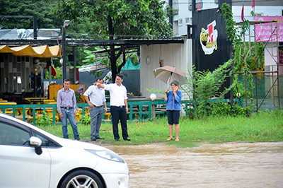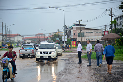 รองศาสตราจารย์ ดร.ประยุกต์ ศรีวิไล ผู้รักษาราชการแทนอธิการบดีมหาวิทยาลัยมหาสารคาม พร้อมด้วย นางฉันทลักษณ์ สาชำนาญ ผู้อำนวยการกองอาคารสถานที่ นายกรกฎ ปางลีลาศ ผู้ช่วยผู้อำนวยการกองอาคารสถานที่ มหาวิทยาลัยมหาสารคาม ลงพื้นที่เพื่อกำกับติดตามการแก้ไขปัญหาน้ำท่วมขังถนนเส้นมหาวิทยาลัยมหาสารคาม – บ้านดอนยม เบื้องต้นทางมหาวิทยาลัยได้มอบหมายให้เจ้าหน้าที่ฝ่ายกองอาคารสถานที่ แก้ไขปัญหาดังกล่าว โดยขุดร่องทำแนวระบายน้ำ เพื่อบรรเทาความเดือดร้อนช่วยให้การเดินทางของ นิสิตและบุคลากรมหาวิทยาลัยมหาสารคาม ตลอดจนประชาชนทั่วไป มีความสะดวกและความปลอดภัยมากขึ้น