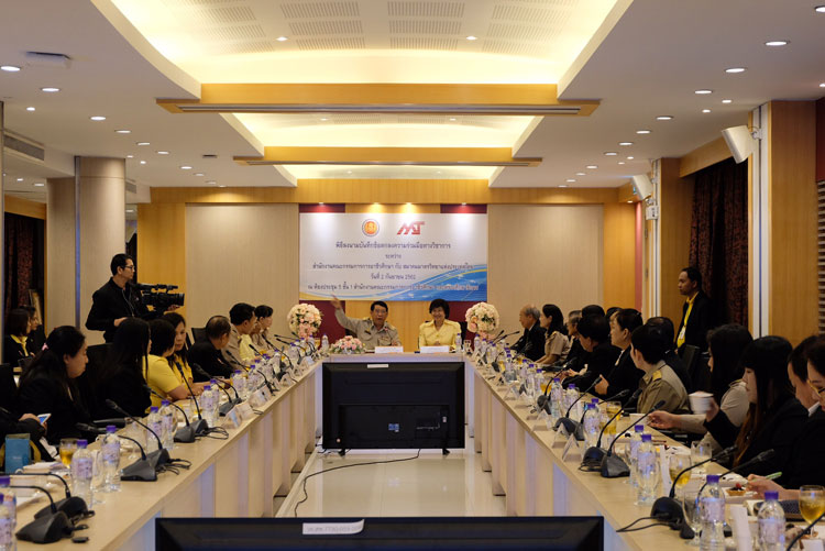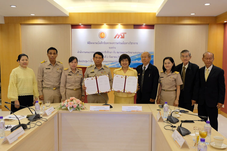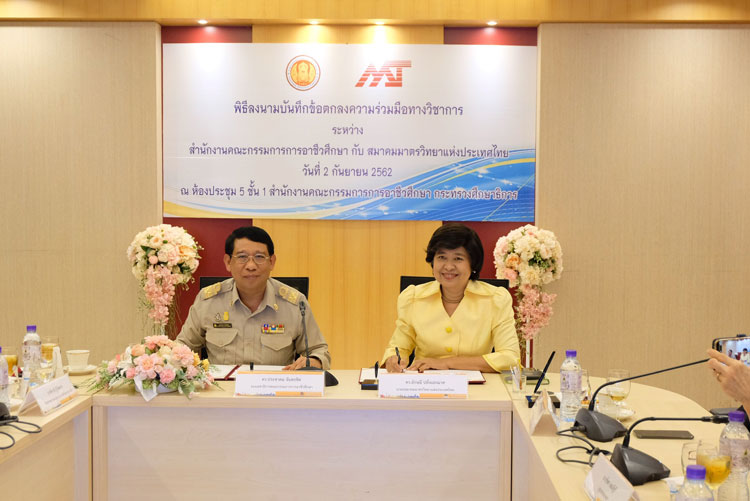 ดร.ประชาคม จันทรชิต รองเลขาธิการคณะกรรมการการอาชีวศึกษา และนางลักษมี ปลั่งแสงมาศ นายกสมาคมมาตรวิทยาแห่งประเทศไทย ร่วมลงนามความร่วมมือ "โครงการฝึกอบรมหลักสูตรวิชาชีพมาตรวิทยามิติยุค 4.0" เพื่อเพิ่มพูนความรู้ ทักษะ และสมรรถนะของครูผู้สอนในสถานศึกษา สังกัดสำนักงานคณะกรรมการ การอาชีวศึกษา ในด้านเทคโนโลยีเครื่องมือวัดยุคใหม่และการสอบเทียบเครื่องมือวัดให้สามารถนำไปประยุกต์ใช้และถ่ายทอดความรู้ให้แก่ผู้เรียนได้อย่างถูกต้องเหมาะสม สอดคล้องกับมาตรฐานคุณวุฒิวิชาชีพ มาตรวิทยา สาขาอาชีพผู้สอบเทียบเครื่องมือวัดมิติชั้นที่ 1-2 ณ ห้องประชุม 5 สำนักงานคณะกรรมการการอาชีวศึกษา