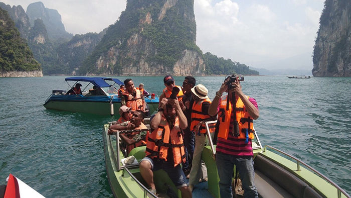 วันนี้( 25 ก.ย. 62) ที่อ่างเก็บน้ำเขื่อนรัชชประภา(เชียวหลาน) ต.เขาพังอ.บ้านตาขุน จ.สุราษฎร์ธานี มหาวิทยาลัยราชภัฏสุราษฎร์ธานี(มรส.) โดยผศ.ดร.ไซนีย๊ะ สะมาลา และดร.กิตติมา คงทน อาจารย์สาขาวิชาชีววิทยา คณะวิทยาศาสตร์และเทคโนโลยีมหาวิทยาลัยราชภัฏสุราษฎร์ธานี พร้อมด้วย ว่าที่ร.ต.สุทธิรักษ์ หนองแก้ว ร่วมกับนักวิจัยลงพื้นที่ออกสำรวจต้นเทียนสิรินธร พืชประจำถิ่นจังหวัดสุราษฎร์ธานี เพื่อหาช่วงที่มีจำนวนดอกมากที่สุดสำหรับกำหนดเป็นช่วงฤดูการเที่ยวชม หวังกระตุ้นเศรษฐกิจด้านการท่องเที่ยวในจังหวัดสุราษฎร์ธานี