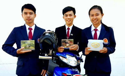 นายดนัยฤทธิ์ เล่าให้ฟังถึงการเริ่มต้นว่า ทำเป็นธุรกิจจำหน่ายอุปกรณ์ล็อครถจักรยานยนต์ “DTEC Smart Lock”โดยได้ประดิษฐ์คิดค้นอุปกรณ์ล็อครถจักรยานยนต์ดังกล่าว แล้วนำไปแสดงสาธิตในเวทีประกวดสิ่งประดิษฐ์ต่าง ๆ และมีประชาชนสนใจเข้ามาติดต่อขอซื้ออุปกรณ์ฯ กันเป็นจำนวนมาก โดย เห็นว่า เป็นอุปกรณ์ล็อครถจักรยานยนต์ที่ใช้งานง่าย สามารถล็อคทั้งหมวกกันน็อค คันเร่ง และก้านเบรกมือได้พร้อมกัน มีน้ำหนักเบา ขนาดกะทัดรัด พกพาสะดวกโดยสามารถเก็บไว้ใต้เบาะรถได้เมื่อไม่ได้ใช้งาน มีรูปทรงสวยงามทันสมัย ดูแลรักษาง่าย อีกทั้งสะดวกต่อสุภาพสตรีที่นุ่งกระโปรงโดยไม่ต้องก้มลงไปล็อคดิสเบรกที่ล้อในพื้นที่ที่แคบเนื่องจากการจอดรถชิดกันเป็นแถว ซึ่งเมื่อลูกค้าได้ทดลองใช้แล้วต่างพูดเป็นเสียงเดียวกันว่า คุ้มค่ามาก และเกิดความสบายใจเวลานำรถจักรยานยนต์ไปจอดไว้ในสถานที่ต่าง ๆ เพราะเป็นอุปกรณ์ที่ช่วยป้องกันการถูกโจรกรรมรถจักรยานยนต์และหมวกกันน็อคได้จริง สร้างความปลอดภัยให้กับทรัพย์สิน ตนและเพื่อน ๆ จึงตัดสินใจเขียนเป็นแผนธุรกิจส่งในนามศูนย์บ่มเพาะผู้ประกอบการอาชีวศึกษา โดยปัจจุบันอุปกรณ์ล็อครถจักรยานยนต์นี้ สามารถสร้างยอดขายได้กว่า หมื่นบาทต่อเดือน ทั้งนี้ อุปกรณ์ล็อครถจักรยานยนต์ “DTEC Smart Lock” บรรจุในซองหนังสีสันสวยงาม ขายราคา 850 บาท หากสั่งซื้อจำนวน 10 ชิ้นขึ้นไป จำหน่ายในราคา 800 บาท บริการจัดส่งทั่วประเทศ คิดค่าส่งตามน้ำหนัก (เริ่มต้นที่ 50 บาท) สนใจสั่งซื้อได้ที่โทร 085-4912343 , 090-3213772 หรือทาง เฟซบุ๊กที่เพจ DTEC Smart lock หรือศูนย์บ่มเพาะผู้ประกอบการอาชีวศึกษาวิทยาลัยเทคนิคเดชอุดม จังหวัดอุบลราชธานี”