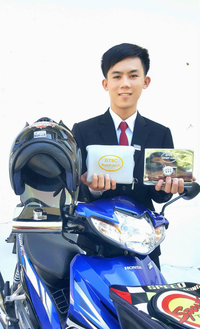 นายดนัยฤทธิ์ สมภาวะ นักศึกษาชั้น ปวส. 1 สาขาวิชาอิเล็กทรอนิกส์ วิทยาลัยเทคนิคเดชอุดม จังหวัดอุบลราชธานี เล่าว่า ปัจจุบันความเหลื่อมล้ำทางสังคมและเศรษฐกิจ ทำให้ผู้คนต้องดิ้นรนหาเงินทุก วีถีทางเพื่อให้ตัวเองและครอบครัวสามารถดำรงชีวิตอยู่ได้ และการโจรกรรมรถจักรยานยนต์ก็เป็นหนทางหนึ่งที่ทำได้ง่ายและได้รับผลตอบแทนค่อนข้างสูง ประกอบกับจังหวัดอุบลราชธานี เป็นจังหวัดที่มีชายแดนติดต่อกับประเทศเพื่อนบ้าน คือ สาธารณรัฐประชาธิปไตยประชาชนลาว และราชอาณาจักรกัมพูชา จึงเป็นพื้นที่เสี่ยงต่อการถูกโจรกรรมรถจักรยานยนต์ โดยผู้ร้ายจะนำรถจักรยานยนต์ไปขายหรือถอดชิ้นส่วนแยกเป็นอะไหล่ลักลอบส่งขายไปทางตะเข็บชายแดนสู่ประเทศเพื่อนบ้าน สร้างความเดือดร้อนให้กับประชาชนในพื้นที่เป็นอย่างมาก จากปัญหาดังกล่าว ตนและเพื่อนๆ ในทีม และนายสุริยา สามแก้ว ครูที่ปรึกษา จึงช่วยกันศึกษาและคิดค้นอุปกรณ์ล็อครถจักรยานยนต์ “DTEC Smart Lock” ระบบทรีอินวัน ซึ่งมีคุณสมบัติพิเศษแตกต่างจากในท้องตลาด คือช่วยล็อครถจักรยานยนต์ได้ทั้งหมวกกันน็อค คันเร่งและก้านเบรกมือในคราวเดียวกัน โดยอุปกรณ์มีลักษณะเป็นกล่องสี่เหลี่ยมผืนผ้าทำจากแผ่นสแตนเลสอย่างดีออกแบบให้มีความหนาอย่างเหมาะสม มีน้ำหนัก 0.6 กรัม ขนาดกะทัดรัด และมีระบบล็อคด้วยชุดกุญแจที่มีคุณภาพมาตรฐาน ซึ่งเมื่อล็อค คันเร่งจะไม่สามารถบิดได้และล้อหน้าก็จะถูกล็อคไว้ด้วย ทำให้ไม่สามารถเข็นรถจักรยานยนต์ไปได้ จะต้องมีลูกกุญแจเท่านั้นเพื่อไขเปิดล็อค ถึงจะนำรถออกไปได้ และในกรณีที่มีการใช้เลื่อยหรือคีมตัด ก็จะตัดได้ยากซึ่งต้องใช้เวลานานในการตัด โดยอุปกรณ์ล็อครถจักรยานยนต์ “DTEC Smart Lock” ได้รับรางวัลรองชนะเลิศ สุดยอดนวัตกรรมสิ่งประดิษฐ์อาชีวศึกษา ระดับชาติ ประจำปีการศึกษา พ.ศ. 2560 ประเภทที่ 1 สิ่งประดิษฐ์ด้านพัฒนาคุณภาพชีวิต รางวัลชนะเลิศในรายการสมรภูมิไอเดียทางโทรทัศน์ไทยทีวีสี ช่อง 3และรางวัล Young Innovator Awards จากประเทศสิงคโปร์ในงานประกวดงานวันนักประดิษฐ์ ประจำปี พ.ศ. 2560 ที่ศูนย์นิทรรศการและการประชุมไบเทค บางนา กรุงเทพฯ นอกจากนี้ ยังได้รับการขึ้นทะเบียนอนุสิทธิบัตรการประดิษฐ์จากกรมทรัพย์สินทางปัญญาอีกด้วย