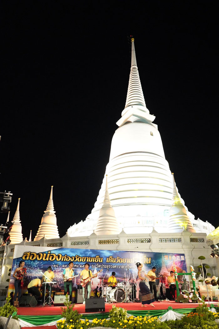 ทั้งนี้ นับเป็นความร่วมมือจากหน่วยงานต่างๆ อาทิ กระทรวงศึกษาธิการ, กระทรวงการต่างประเทศ, การท่องเที่ยวแห่งประเทศไทย สำนักงานกรุงเทพมหานคร , กรุงเทพมหานคร และสำนักงานคณะกรรมการการอาชีวศึกษา และจัดให้มีพิธีเปิดงาน "สองน่องท่องวัดยามเย็น เห็นวัดยามค่ำคืน" โดยมีพระพรหมบัณฑิต เจ้าอาวาสวัดประยุรวงศาวาส เป็นประธานพิธี ร่วมด้วยนายณรงค์ แผ้วพลสง เลขาธิการคณะกรรมการการอาชีวศึกษา ผู้แทนปลัดกรุงเทพมหานคร ผู้แทนจากการท่องเที่ยวแห่งประเทศไทย ผู้อำนวยการเขตธนบุรี ผู้อำนวยการสถานศึกษา แขกผู้มีเกียรติ และประชาชน เข้าร่วมงาน