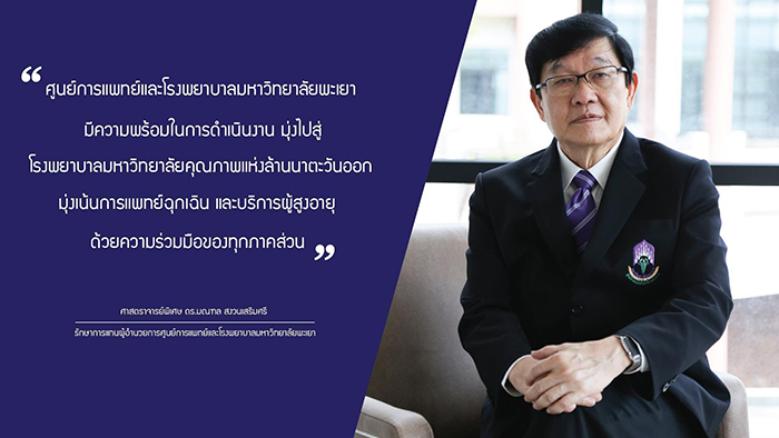 ศาสตราจารย์พิเศษ ดร.มณฑล สงวนเสริมศรี รักษาการแทนผู้อำนวยการศูนย์การแพทย์และโรงพยาบาลมหาวิทยาลัยพะเยา กล่าวว่า ศูนย์การแพทย์และโรงพยาบาลมหาวิทยาลัยพะเยาได้ดำเนินการเข้ารับการตรวจประเมินเพื่อขึ้นทะเบียนหน่วยบริการในระบบหลักประกันสุขภาพแห่งชาติระดับเขต 1 เชียงใหม่ เมื่อวันที่ 26 สิงหาคม พ.ศ. 2562 รวมถึงการตรวจรับรองมาตรฐานสถานพยาบาลใหม่ ปี 2563 โดย สำนักงานประกันสังคมจังหวัดพะเยา เมื่อวันที่ 17 กันยายน 2562 ที่ผ่านมานั้น ขณะนี้ ศูนย์การแพทย์และโรงพยาบาลมหาวิทยาลัยพะเยา ได้เข้าร่วมเป็นสถานพยาบาลเพื่อให้บริการทางการแพทย์แก่ผู้ประกันตน ประจำปี 2563 เป็นที่เรียบร้อยแล้ว นับเป็นโอกาสอันดีของผู้ประกันตนจะสามารถใช้สิทธิหลักประกันสุขภาพแห่งชาติ (สิทธิบัตรทอง) ในการรักษาพยาบาล ณ ศูนย์การแพทย์และโรงพยาบาลมหาวิทยาลัยพะเยา โดยสามารถเช็คสิทธิประกันสังคม เพื่อขอรับคำแนะนำจากเจ้าหน้าที่ โทรสายด่วน สปสช. 1330 ให้บริการตลอด 24 ชั่วโมง ผู้ใช้สิทธิหลักประกันสุขภาพแห่งชาติ (สิทธิบัตรทอง) ใช้สิทธิเปลี่ยนหน่วยบริการประจำได้ 4 ครั้ง/ปี (ที่มา : สำนักงานหลักประกันสุขภาพแห่งชาติ)