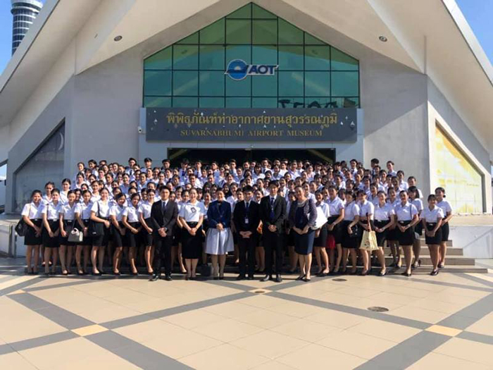 นอกจากนี้ยังได้เข้าศึกษาเรียนรู้ข้อมูลทางประวัติศาสตร์ที่เกี่ยวกับท่านอากาศยานที่สำคัญของประเทศไทย ณ พิพิธภัณฑ์ท่าอากาศยานสุวรรณภูมิ จ.สมุทรปราการ เพื่อเสริมสร้างความรู้ทางวิชาการและประสบการณ์ทางวิชาชีพ ซึ่งกิจกรรมดังกล่าวนี้เป็นส่วนหนึ่งของกิจกรรมในรายวิชา การพัฒนาบุคลิกภาพและการพัฒนาอัตลักษณ์เพื่องานบริการ ที่มุ่งเน้นให้นักศึกษาได้รับความรู้ ทั้งวิชาการ วิชาชีพ และประสบการณ์จริง
