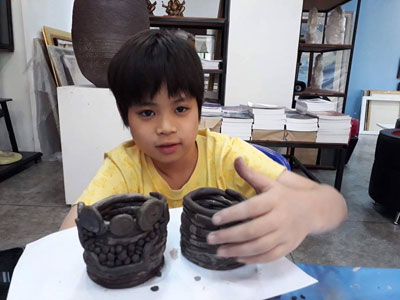 อาจารย์ทศพล เปิดใจว่า โครงการนี้เป็นการทดลองเปิดสอนครั้งแรก ซึ่งในการเปิดสอนคอร์สเซรามิกสำหรับเด็กนั้น เราต้องมาคิดว่า จะสอนอย่างไรให้เด็กได้ความรู้เกี่ยวกับการปั้น เกี่ยวกับทักษะการนวดกล้ามเนื้อมือ ผมจึงได้เลือกสอนการปั้นและการทำกระถางต้นไม้เพื่อปลูกต้นไม้ ง่าย ๆ ในระยะเวลา 2 สัปดาห์ สัปดาห์แรก คือ การวาด และสัปดาห์ที่ 2 คือ การปั้น ซึ่งในการสอนคอร์สเซรามิก เราจะสอนเรียนรู้เรื่องรูปทรง สัดส่วน โทนสี มิติสัมพันธ์ และเทคนิคการปั้นดิน 3 มิติ