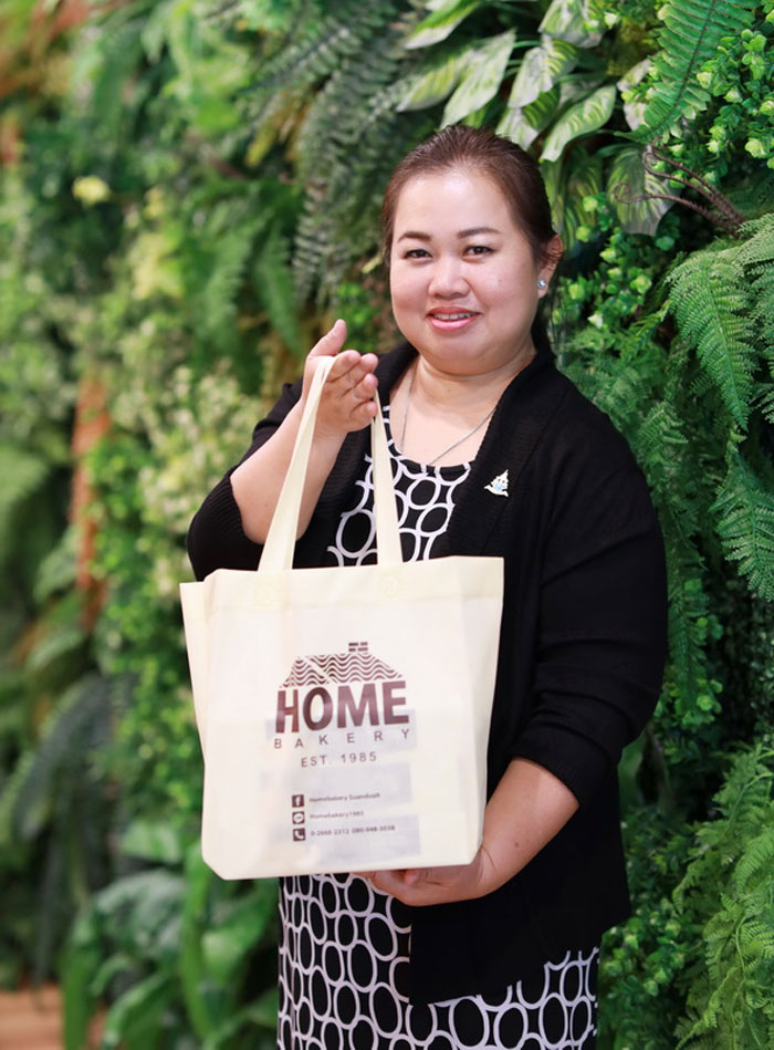 ดร.จันทร์จนา กล่าวต่อว่า มหาวิทยาลัยสวนดุสิต ตระหนักถึงปัญหาสิ่งแวดล้อมมาโดยตลอด โดยผลิตสื่อและจัดโครงการรณรงค์ “การลดขยะ ลดใช้ถุงพลาสติก” ดำเนินการขับเคลื่อนภายใต้คณะกรรมการความปลอดภัย อาชีวอนามัยและสภาพแวดล้อมในการทำงาน -คปอ.และมีศูนย์วิทยาศาตรสตร์ เป็นต้นแบบการจัดการสีเขียว : Green Office และ Green Meeting อย่างต่อเนื่อง ดังนั้น ร้านโฮมเบเกอรี่ ถือเป็นหน่วยงานภายในของมหาวิทยาลัยสวนดุสิต ร่วมรณรงค์การลดใช้ถุงพลาสติก จึงประกาศงดแจกถุงพลาสติกสำหรับลูกค้าที่มาซื้อขนมโฮมเบเกอรี่ เริ่มตั้งแต่วันที่ 15 พฤศจิกายน 2562 เป็นต้นไป และใช้ แก้วไบโอ (BIO) ฝาโดมยกดื่มสามารถย่อยสลายได้ สำหรับเครื่องดื่มทุกชนิด เพื่อลดการใช้หลอดพลาสติก เช่นเดียวกัน ซึ่งมีการประชาสัมพันธ์ให้กับลูกค้าได้ทราบในเบื้องต้นแล้ว หากลูกค้าซื้อสินค้าครบ 500 บาท เราแจกถุงผ้ารียูสแบรนด์โฮมเบเกอรี่ แต่หากบุคคลใดอยากได้ หรือ ลืมนำถุงมาใส่ขนมอบ เราจัดจำหน่ายในราคาย่อมเยาว์ โฮมเบเกอรี่ขอเป็นส่วนหนึ่งในการรักษ์โลก และขอเชิญชวนให้ทุกคนหันมาใส่ใจรักษาสิ่งแวดล้อม ซึ่งเชื่อว่า หากเรา(คนไทย)ทุกคนร่วมไม้ร่วมมือ จะสามารถแก้ไขปัญหาเรื่องสิ่งแวดล้อมได้อย่างยั่งยืน ทั้งนี้ สามารถสอบถามรายละเอียดเพิ่มเติมได้ที่ โฮมเบเกอรี่ (ม.สวนดุสิต) โทร 02 668 8231 ถึง 3