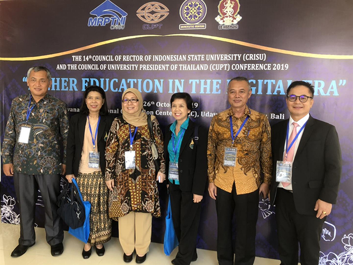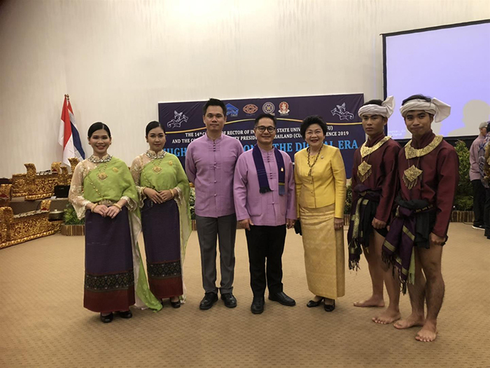 รองศาสตราจารย์ ดร.ทิพย์จันทร์ วงศ์จันทร์ตา รองอธิการบดีฝ่ายสื่อสารองค์กร พร้อมด้วย ดร.วุฒิชัย ไชยรินคำ รองอธิการบดีฝ่ายคุณภาพนิสิต อาจารย์รัตนะ ตาแปง คณะสถาปัตยกรรมศาสตร์และศิลปกรรมศาสตร์ พร้อมด้วยนิสิตมหาวิทยาลัยพะเยา เป็นตัวแทนเดินทางไปเข้าประชุมความร่วมมือไทย-อินโดนีเซีย ครั้งที่ 14 ในหัวข้อเรื่อง “Science and Humanities in the Era of Digital Technology” พร้อมทั้งนำเสนอ การแสดงฟ้อนสาวไหม ชายหญิง สายสกุลช่างฟ้อนแม่ครูบัวเรียว รัตนมณีภรณ์ ศิลปินแห่งชาติ ปรับปรุงท่ารำโดยอาจารย์รัตนะ ตาแปง ทั้งนี้การสัมมนาทางวิชาการดังกล่าว มีวัตถุประสงค์เพื่อเสริมสร้าง และสนับสนุนความร่วมมือทางวิชาการระหว่างสถาบันอุดมศึกษาของประเทศไทยและประเทศอินโดนีเซีย ณ Udayana International Convention Center, Kampus Jimbaran ประเทศอินโดนีเซีย ระหว่างวันที่ 23-26 ตุลาคม 2562 ที่ผ่านมา
