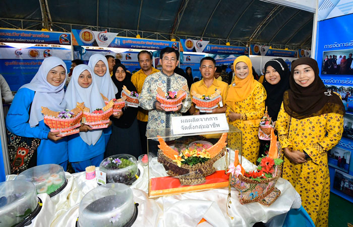 นายณรงค์ แผ้วพลสง ผู้ตรวจราชการกระทรวงศึกษาธิการ รักษาราชการเลขาธิการคณะกรรมการ การอาชีวศึกษา ได้กล่าวภายหลังพิธีเปิดงานว่า สอศ. ได้มอบให้ศูนย์พัฒนาการศึกษาเขตพัฒนาพิเศษเฉพาะกิจจังหวัดชายแดนใต้ จัดงานมหกรรมวิชาชีพอาชีวศึกษาขึ้น เพื่อเป็นการเผยแพร่ประชาสัมพันธ์การดำเนินงานด้านการส่งเสริมการจัดการศึกษาวิชาชีพ ในพื้นที่จังหวัดชายแดนภาคใต้ที่สอดคล้องตามยุทธศาสตร์ชาติ ด้านความมั่นคงและแสดงให้เห็นถึงภาพลักษณ์ที่ดีในการจัดการศึกษาด้านวิชาชีพของ สอศ. ที่มีต่อสังคม ชุมชน โดยการจัดงานครั้งนี้ มีผู้เข้าร่วมงาน ได้แก่ ผู้บริหารสถานศึกษาสังกัด สอศ. ในเขตจังหวัดภาคใต้ นักเรียน นักศึกษาในสถาบันปอเนาะ โรงเรียนเอกชนสอนศาสนาอิสลาม นักเรียนแกนประถมศึกษา มัธยมศึกษา ในเขตพัฒนาพิเศษเฉพาะกิจจังหวัดชายแดนภาคใต้ เยาวชนและประชาชนทั่วไปที่สนใจการศึกษาด้านวิชาชีพ สถานประกอบการที่มีส่วนร่วมในการจัดการศึกษาในเขตพัฒนาพิเศษเฉพาะกิจจังหวัดชายแดนภาคใต้ ทั้งนี้ได้รับความร่วมมืออย่างดียิ่งจากสถานศึกษาสังกัด สอศ. ภาคใต้ทั้งอาชีวศึกษาภาครัฐและเอกชน รวมไปถึงศูนย์ฝึกอบรมวิชาชีพประจำอำเภอ ของสถานศึกษาจังหวัดชายแดนภาคใต้ จำนวน 23 ศูนย์ ที่มาร่วมฝึกอบรมวิชาชีพให้กับผู้สนใจโดยไม่เสียค่าใช้จ่าย ซึ่งมีรายวิชาที่น่าสนใจ เช่น การติดตั้งระบบโซล่าเซลล์ การทำพวงกุญแจวิศวกรรมสมัยใหม่ การทำเรือกอแระด้วยผ้าปาเต๊ะ การจักสานด้วยเส้นใยพลาสติก การทำช่อบูเก้ การทำอาหารญี่ปุ่น (ทาโกะยากิ) การทำน้ำแข็งไมโลลาวา การทำขนมผูกรัก ฯลฯ ทุกรายวิชาสามารถนำไปประกอบอาชีพได้ทันที หรือเป็นการเพิ่มเติมความรู้ใหม่ เพื่อเป็นงานอดิเรก