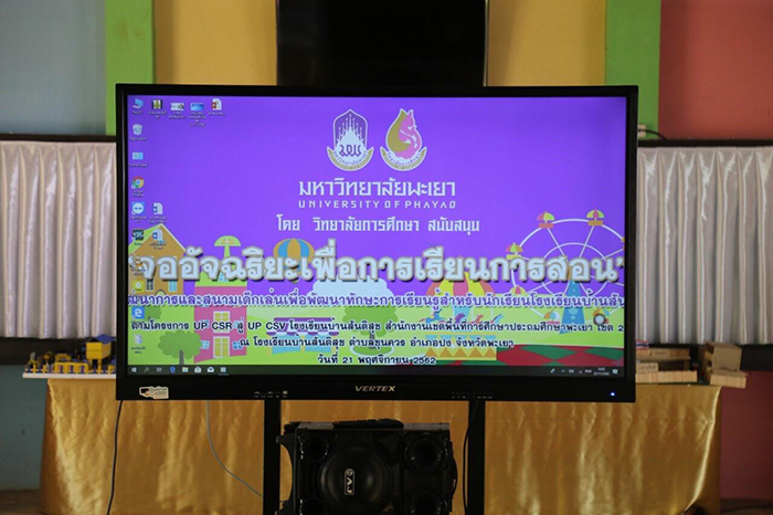 นอกจากนี้ภายในงานยังมีกิจกรรม โครงการจิตอาสา UP CSR สู่ CSV เพื่อตอบโจทย์ตามปณิธานของมหาวิทยาลัยพะเยา “ปัญญาเพื่อความเข้มแข็งของชุมชน” โดยมีหน่วยงานภายในมหาวิทยาลัยพะเยา ได้แก่ วิทยาลัยการศึกษา มหาวิทยาลัยพะเยา ได้รับมอบหมายจากอธิการบดีมหาวิทยาลัยพะเยา ในการดูแลและอำนวยความสะดวกทางด้านการศึกษา โดยจัดให้มีการมอบอุปกรณ์การเรียน อาทิ กระดานอัจฉริยะ (interactive board) ครุภัณฑ์ทางการศึกษา ตลอดจนอำนวยความสะดวกแผนระยะยาว ในการปรับปรุงสนามเด็กเล่น ให้กับเด็กนักเรียนภายในโรงเรียนบ้านสันติสุข อำเภอปง จังหวัดพะเยา พร้อมพัฒนาคุณภาพชีวิต และ ความเป็นอยู่ของนักเรียนในพื้นที่ ให้ดีขึ้น และในวันที่ ๒๒ พฤศจิกายน ๒๕๖๒ นายจิรายุ อิศรางกูร ณ อยุธยา องคมนตรีพร้อมคณะ เข้าเยี่ยมชมมหาวิทยาลัยพะเยา พร้อมพบปะนิสิตทุนพระราชทาน เพื่อรายงานความคืบหน้า และ ความเป็นอยู่ที่ดีของนิสิตทุนพระราชทานต่อไป