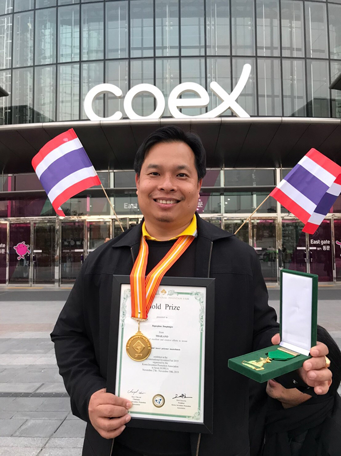 ทีมนักวิจัยจากมหาวิทยาลัยเทคโนโลยีพระจอมเกล้าพระนครเหนือ (มจพ.) เป็นปลื้มคว้า 1 เหรียญทอง 2 เหรียญทองแดง จากงานแสดงผลงานวิจัย สิ่งประดิษฐ์นานาชาติ Seoul International Invention Fair 2019 หรือ SIIF 2019 ที่ได้จัดขึ้นระหว่างวันที่ 27-30 พฤศจิกายน 2562 ที่ผ่านมา ณ COEX กรุงโซล เกาหลีใต้ ผลงานที่ได้รับรางวัลมี ดังนี้ 1 เหรียญทอง 1 Special Prize (ซาอุฯ) ได้แก่