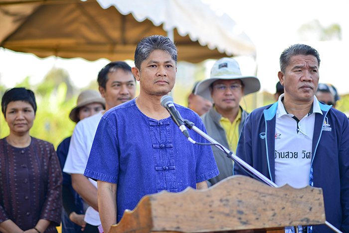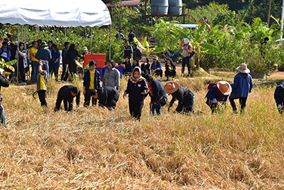 ผู้ช่วยศาสตราจารย์ ดร.ณัฐวุฒิ สุวรรณทา กล่าวว่า ประเพณีลงแขกเกี่ยวข้าวในวันนี้ เป็นกิจกรรมที่จัดขึ้น เพื่อให้คณาจารย์ บุคลากร นิสิต นักเรียน และประชาชนที่สนใจ ได้ร่วมกิจกรรมบำเพ็ญประโยชน์ โดยการรักษาและอนุรักษ์ประเพณีการลงแขกเกี่ยวข้าว ซึ่งเป็นรากฐานของคนไทย และเพื่อสร้างความสัมพันธ์ ระหว่างคณาจารย์ บุคลากร นิสิต นักเรียน ได้ร่วมสืบสานประเพณีการลงแขกเกี่ยวข้าวร่วมกัน ซึ่งเป็นโครงการต่อเนื่องจากกิจกรรมปลูกวันแม่เก็บเกี่ยววันพ่อ ซึ่งได้ดำเนินการปักดำแล้วในวันแม่ และช่วงนี้ก็เริ่มเข้าสู่ฤดูการเก็บเกี่ยว เพื่อสืบทอดประเพณีอีสานอันดีงามของบรรพบุรุษให้คงอยู่สืบไป