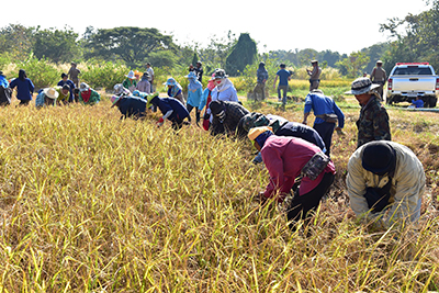 วันนี้ (13 ธันวาคม 2562) มหาวิทยาลัยมหาสารคาม จัดโครงการประเพณีลงแขกเกี่ยวข้าว เพื่อเป็นการอนุรักษ์วิถีชุมชน และสืบสานประเพณีอันดีงามของบรรพบุรุษ โดยมี ผู้ช่วยศาสตราจารย์ ดร.กนกพร รัตนสุธีระกุล รองอธิการบดีฝ่ายพัฒนาทรัพยากรบุคคล มหาวิทยาลัยมหาสารคาม เป็นประธานกล่าวเปิดงาน และ ผู้ช่วยศาสตราจารย์ ดร.ณัฐวุฒิ สุวรรณทา ผู้ช่วยอธิการบดีฝ่ายสาธารณูปโภคและอาคารสถานที่ นำผู้บริหาร คณาจารย์ บุคลากร และนิสิต ร่วมลงแขกเกี่ยวข้าว ที่แปลงนาโครงการเรียนรู้เศรษฐกิจพอเพียงเพื่อพัฒนาอย่างยั่งยืน มหาวิทยาลัยมหาสารคาม (เขตพื้นที่ขามเรียง)