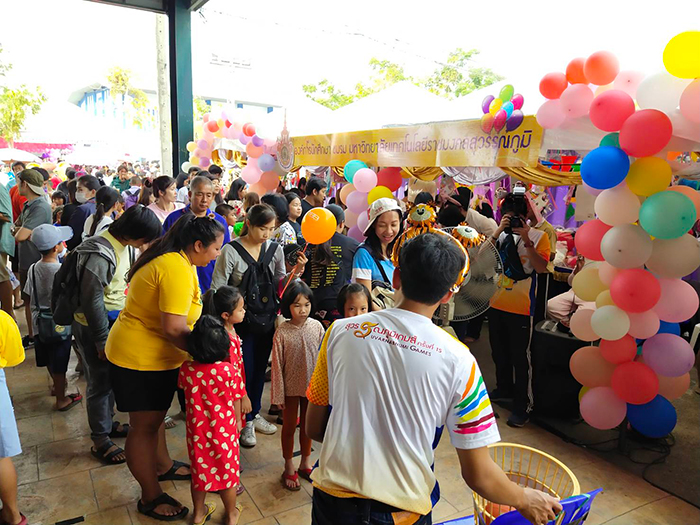 อาจารย์เรืองสิน ปลื้มปั่น ผู้ช่วยอธิการบดี นำบุคลากรและนักศึกษามหาวิทยาลัยเทคโนโลยีราชมงคลสุวรรณภูมิ ร่วมจัดกิจกรรมวันเด็กแห่งชาติจังหวัดพระนครศรีอยุธยา ประจำปี พ.ศ. ๒๕๖๓ และจัดกิจกรรมให้กับน้อง ๆ เยาวชนได้ร่วมสนุกเล่นเกมส์ตอบคำถามพร้อมรับของรางวัล ณ สนามกีฬากลางจังหวัดพระนครศรีอยุธยา