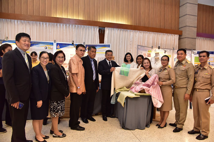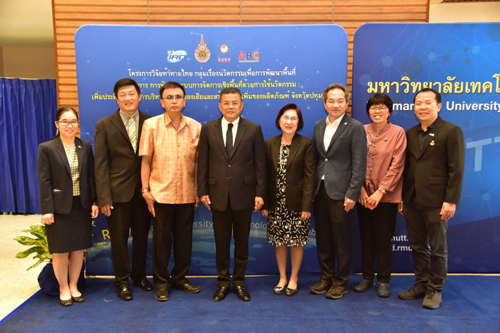 ตามที่มหาวิทยาลัยเทคโนโลยีราชมงคล (มทร.) ธัญบุรี และ จังหวัดปทุมธานี จัดประชุมติดตามความก้าวหน้า 12 เดือน โครงการท้าทายไทย กลุ่มเรื่องนวัตกรรมเพื่อการพัฒนาเชิงพื้นที่ 2561 เป็นการประชุมเพื่อสร้างนวัตกรรมสำหรับการแก้ปัญหาการบริหารจัดการของเสียโดยการพัฒนาจากโจทย์ของชุมชนในเขตพื้นที่จังหวัดปทุมธานี พัฒนาต่อยอดผ้าใยกล้วยบัวหลวง กลุ่มแม่บ้านแสงตะวัน เป็นผ้าประจำจังหวัดปทุมธานี โดย ดร.พินิจ บุญเลิศ ผู้ว่าราชการจังหวัดปทุมธานี เผยว่า ทางจังหวัดปทุมธานีต้องการสร้างผลงานนวัตกรรมใหม่ ในพื้นที่จังหวัดปทุมธานี สำหรับพื้นที่การวิจัยจากใยกล้วย ผลงานของผู้ช่วยศาสตราจารย์ ดร.สาคร ชลสาคร คณบดีคณะเทคโนโลยีคหกรรมศาสตร์ ได้นำกล้วยที่เหลือใช้ มาพัฒนาเป็นเส้นใยกล้วย และได้ต่อยอดเป็นผ้าจากใยกล้วยบัวหลวง จากคุณสมบัติพิเศษของผ้าใยกล้วยบัวหลวง มีน้ำหนักเบา สวมใส่แล้วรู้สึกสบาย ทางจังหวัดปทุมธานีได้นำผ้าใยกล้วยบัวหลวงมาตัดเย็บเป็นเสื้อผ้าสวมใส่ของเจ้าหน้าที่จังหวัดปทุมธานี ซึ่งในขณะนี้ทางจังหวัดปทุมธานีได้สนับสนุนผ้าใยกล้วยบัวหลวงของกลุ่มแม่บ้านแสงตะวัน เป็นผ้าประจำจังหวัดปทุมธานี สนับสนุนทางด้านงบประมาณในการซื้อเครื่องจักร อาทิ เครื่องแยกเส้นใยกล้วยและเครื่องทอผ้า ในการผลิตให้ทันต่อการสั่งซื้อและสร้างรายได้ให้กับกลุ่มแม่บ้านแสงตะวันต่อไป