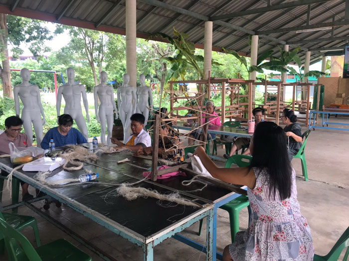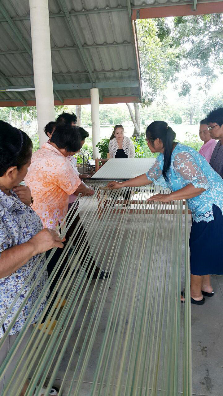 นางสาวบุญนภา บัวหลวง ประธานกลุ่มแม่บ้านแสงตะวัน เล่าว่า ทางจังหวัดได้ผลักดันให้ผ้าใยกล้วยบัวหลวง ของทางกลุ่มเป็นผ้าประจำจังหวัดนั้น ทางจังหวัดได้ให้การสนับสนุนด้านงบประมาณ โดยให้กี่ทอผ้ามา 5 ตัว และปัจจุบันทางจังหวัดได้ดำเนินการในการจัดซื้อเครื่องแยกใยกล้วยและเครื่องทอผ้าให้กับทางกลุ่ม เพื่อให้นำมาใช้ในการผลิตผ้าใยกล้วยบัวหลวง ซึ่งขณะนี้ทางกลุ่มได้นำความรู้ที่ทาง มทร.ธัญบุรี มาต่อยอดพัฒนาลวดลายผ้าใยกล้วยบัวหลวงได้ 7 ลวดลาย และตัดเย็บเป็นเสื้อผ้า จำหน่าย ตามความต้องการของลูกค้า ผู้สนใจสามารถเยี่ยมชมผ้าเส้นใยกล้วยบัวหลวงได้ที่ กลุ่มแม่บ้านแสงตะวัน ณ ศูนย์ส่งเสริมอาชีพวัดไก่เตี้ย อำเภอสามโคก จังหวัด