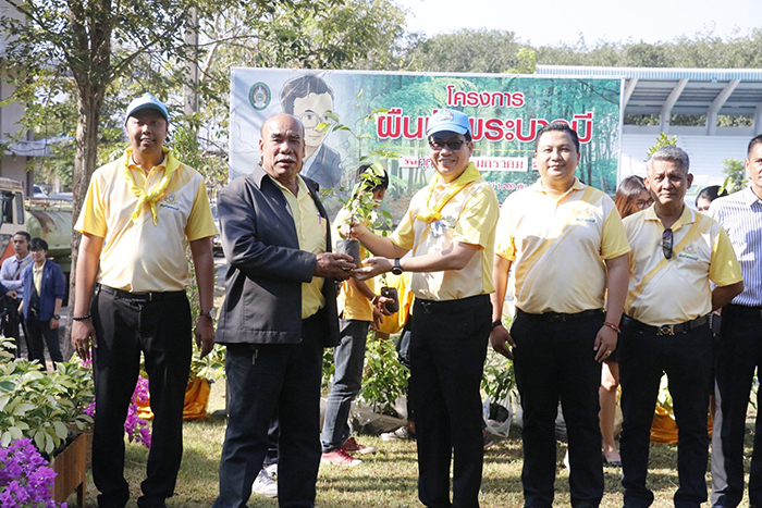 วันนี้ ( 24 มกราคม 2563 ) เวลา 9.00 น. ผศ.ดร.วัฒนา รัตนพรหม รักษาราชการแทนอธิการบดีมหาวิทยาลัยราชภัฏสุราษฎร์ธานี (มรส.) พร้อมคณะผู้บริหาร อาจารย์ บุคลากร นักศึกษา สื่อมวลชน และประชาชน ร่วมใจปลูกต้นไม้ ในโครงการ “ป่าของพ่อ” ร่วมปลูกป่า เพื่อน้อมรำลึกถึงพระมหากรุณาธิคุณ และสืบสานพระราชปณิธานของพระบาทสมเด็ดพระบรมชนกาธิเบศรมหาภูมิพลอดุลยเดชมหาราช บรมนาถบพิตร ในด้านการอนุรักษ์ฟื้นฟูทรัพยากรธรรมชาติและสิ่งแวดล้อม จึงได้จัดกิจกรรมปลูกต้นไม้พะยอมและยางนา ณ บริเวณสระว่ายน้ำกรดเกล้า มหาวิทยาลัยราชภัฏสุราษฎร์ธานี
