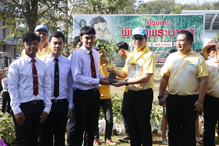 โดย รักษาราชการแทนอธิการบดี กล่าวต่อไปอีกว่า มรส. มีนโยบายด้านการอนุรักษ์สิ่งแวดล้อม ภายใต้พระราชดำริของในหลวงรัชกาลที่ 9 ด้วยการให้นักศึกษาและบุคลากรร่วมกันปลูกต้นไม้โดยรอบภายในมหาวิทยาลัยเดือนละ 100 ต้น เป็นระยะเวลา 1 ปี รวมจำนวนทั้งสิ้น 1,200 ต้น เพื่อถวายเป็นผืนป่าพระบารมีต่อไป