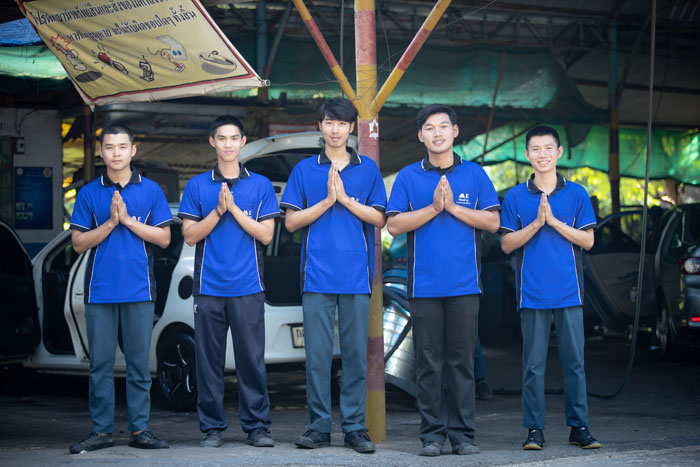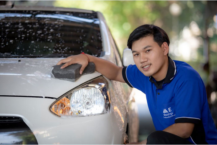 นายสิทธิพร เล่าต่อว่า สำหรับเทคนิคในการล้างรถให้กับลูกค้าในศูนย์ ME Car Care ตนจะเน้นเรื่องความสะอาด ใส่ใจในทุกขั้นตอนของการล้างรถ เพื่อป้องกันรอยขีดข่วนหรือความเสียหายที่เกิดกับรถของลูกค้า อย่างตอนล้างเปียก เวลาใช้สายยางฉีดน้ำรอบคันรถ ก็ไม่ควรรีบถูทำความสะอาด ควรรอให้ดินทรายที่ติดสีนิ่มก่อน ถ้ารีบขัดถู จะทำให้เกิดรอยขนแมวบนรถได้ หรือเวลาฉีดล้างใต้ท้องรถด้วยปั๊มน้ำแรงดันสูงเพื่อชะล้างฝุ่นละออง ดิน และคราบสกปรกที่ฝังแน่นให้หลุดออก ต้องระวังอย่าฉีดบริเวณจานดิสก์เบรก เพราะอาจทำให้ บิดเบี้ยวได้ และตอนเช็ดแห้ง ถ้าบริเวณกันชนหน้ารถยังมีซากแมลง ก็ควรใช้ฟองน้ำชุบยาเคลือบสีถูออก ให้หมด หรือเวลาเช็ดทำความสะอาดเบาะหนัง อย่าฉีดน้ำยาลงที่เบาะโดยตรง ให้ฉีดลงไปที่ผ้าหรือฟองน้ำหรือแปรงที่เราใช้ทำความสะอาดก่อน และที่สำคัญคือเรื่องการใช้น้ำยาทำความสะอาดเบาะหนังเทียม อย่านำมาใช้กับเบาะหนังแท้ เพราะบางชนิด กัดสีเบาะหนังแท้ทำให้เกิดรอยด่างได้ สำหรับจุดแข็งของศูนย์ ME Car Care ที่ทำให้ลูกค้าติดใจ บอกต่อ และกลับมาใช้บริการตลอดเกือบ 20 ปีที่ผ่านมาก็คือ ราคาที่ถูกกว่าในท้องตลาด เมื่อเทียบกับเวลาในการล้างซึ่งทำให้ลูกค้ารอรับรถได้ในเวลาน้อยมากเพียง 15 - 20 นาที เพราะทางร้านมีทีมงานมากถึง 18 คนที่ช่วยกันล้างทำความสะอาดในจุดต่าง ๆ ของรถซึ่งแบ่งหน้าที่ประจำจุดต่าง ๆ กันอย่างชัดเจน ทำให้เกิดความชำนาญในหน้าที่ ตลอดจนคุณภาพของน้ำยาล้างและเคลือบเงารถที่เลือกราคาจ่ายได้ตามที่ลูกค้าต้องการ อีกทั้งยังช่วยเหลือตรวจสภาพรถยนต์เบื้องต้นตามที่ลูกค้าร้องขอให้ฟรีโดยไม่คิดค่าใช้จ่ายเพิ่ม ทั้งนี้ ทางสถานศึกษา ได้มีการจัดฝึกอบรมให้ความรู้ทีมงานในการล้างรถทุกขั้นตอนก่อนการให้บริการ ซึ่งทำให้ลูกค้ามั่นใจในมาตรฐานคุณภาพการให้บริการและความปลอดภัยของทรัพย์สินในรถยนต์ โดยปัจจุบันมียอดรถที่เข้ามาใช้บริการเฉลี่ยต่อวันไม่ต่ำกว่า 32 คัน (และสูงสุดถึง 60 คัน ซึ่งจะเป็นช่วงก่อนและหลังเทศกาลปีใหม่และสงกรานต์) หรือประมาณ 700 คันต่อเดือน คิดเป็นรายได้ต่อเดือนประมาณ 84,000 บาท