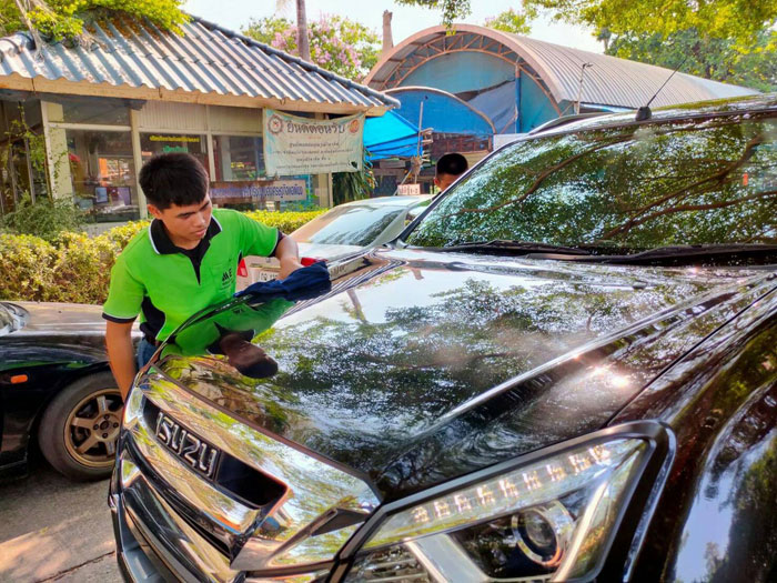 “น้องพี” หรือ นายสิทธิพร พิมสวัสดิ์ นักศึกษาชั้นปวส.2 สาขาเทคนิคอุตสาหกรรม วิทยาลัยเทคนิคปราจีนบุรี ผู้ผ่านการเป็นเด็กล้างรถเล่าถึงประโยชน์ของวิธีการล้างรถด้วยตัวเองว่า การล้างรถด้วยตัวเอง เป็นการเรียนรู้รถที่เราขับ ได้สำรวจรถไปในตัวทั้งด้านนอกและด้านในรถ ได้ลูบคลำรถทั้งคัน ทำให้รู้ว่ารถสกปรกตรงไหนบ้าง ได้สังเกตรอยต่าง ๆ ที่เกิดบนตัวรถ ได้เรียนรู้ขัดถูจุดเล็ก จุดใหญ่ จุดอับ จุดที่เราไม่ค่อยได้เช็ดถู การล้างรถเป็นประจำ ทำให้เราจดจำจุดต่าง ๆ ได้ดี ทำให้รู้ว่ามีรอยใหม่ตรงไหนเกิดขึ้นบ้าง และทำให้ทราบถึงความยากลำบากในการล้างรถซึ่งจะทำให้เกิดความระมัดระวังในการขับขี่มากยิ่งขึ้น และที่สำคัญประหยัดค่าใช้จ่าย ส่วนข้อระวังในการจอดรถก็มีส่วนช่วยในเรื่องของการล้างรถได้ เช่น การจอดรถใต้ต้นไม้ ถ้าต้นไม้มีผลสุก หรือ ดอกที่มีละอองยาง อาจจะตกลงใส่รถแล้วทำให้รถเลอะได้ ยิ่งถ้าปล่อยไว้ให้แห้งนานๆ จะทำให้ยากเวลาล้างทำความสะอาด ขี้นกก็เช่นกัน ต้องระวังให้ดี ถ้าเห็นมีรอยขี้นกบนตัวรถ ควรจะต้องรีบล้างทำความสะอาดโดยเร็ว อย่าปล่อยทิ้งไว้นาน เพราะจะทำให้เกิดสีด่างบนตัวรถ อาจจะต้องทำสีรถใหม่ เพราะมีลูกค้าหลายรายเจอกับปัญหานี้ ต้องเสียเงินแก้ไขทำสีใหม่บริเวณจุดที่มีรอยด่างเพราะปล่อยไว้นานเกินไป