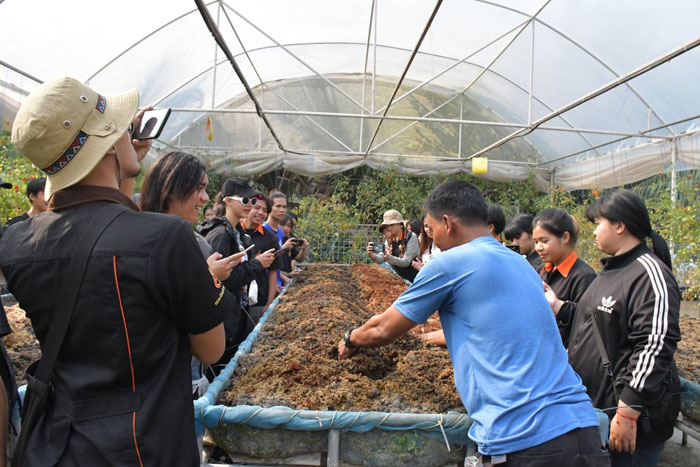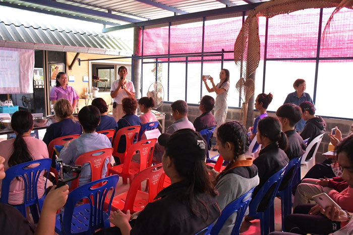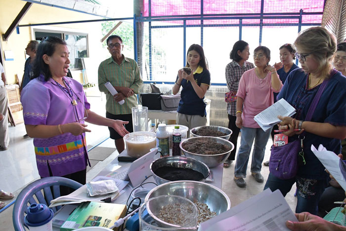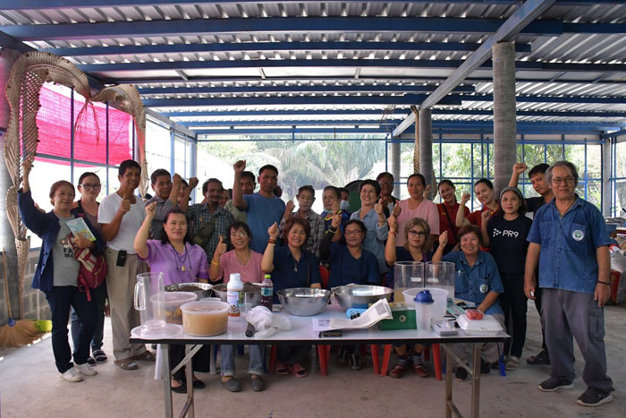 โดย ผู้ช่วยศาสตราจารย์ ดร.สุกาญจน์ รัตนเลิศนุสรณ์ เล่าว่า นวัตกรรมชีวภัณฑ์ที่นำมาบริการวิชาการในครั้งนี้ คือ สารสกัดชีวภาพจากเปลือกผลไม้และมะนาว ด้วยกลไกการกระตุ้น (bio stimulation) ของจุลินทรีย์ เพื่อช่วยในการลดไนเตรต และสารอันตรายโลหะหนักสะสม ผ่านกลไก bio augmentation ร่วมกับปุ๋ยชีวภาพนาโน สำหรับฉีดพ่นร่วมกับนำ้ เพื่อเพิ่มการเจริญเติบโตผัก เพิ่มผลผลิตผักอินทรีย์ต่อไร่ ลดสารอันตรายและไนเตรตสะสมที่มีผลกระทบต่อสุขภาพ ลดปริมาณการใส่ปุ๋ย ลดต้นทุนการผลิตต่อไร่ นอกจากนี้ สารสกัดชีวภาพยังสามารถ ใช้ไล่แมลงศัตรูแมลง ลดการใช้สารเคมี เนื่องจากสารสกัดชีวภาพนี้ ประกอบด้วยสารอาหารหลักรองและเสริม ฮอร์โมน เร่งการแตกตาเอนไซม์ กรดอะมิโน โปรตีน สารสกัดไล่แมลง อื่นๆ ซึ่งผลจากการดำเนินการโครงการเรียนรู้เชิงปฎิบัติการนี้ได้รับการสนับสนุนทุนวิจัยต่อยอดจากกระทรวงพลังงานเพื่อออกแบบและประดิษฐ์เทคโนโลยีชีวในการสกัดสารชีวภาพด้วยเทคโนโลยีของไหลความดันสูง (PLE) และจากการอบรมครั้งนี้ จึงส่งผลให้เกษตรกรแปลงใหญ่ และชุมชนใกล้เคียงให้ความสนใจเข้าร่วมเกินเป้าหมายที่กำหนดไว้