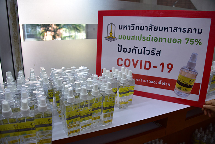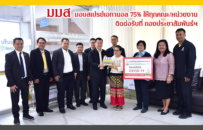 ทั้งนี้ คณะ/หน่วยงาน สามารถติดต่อขอรับสเปรย์เอทานอล 75% ได้ตั้งแต่วันนี้เป็นต้นไป ณ กองประชาสัมพันธ์และกิจการต่างประเทศ มหาวิทยาลัยมหาสารคาม ชั้น 1 อาคารบรมราชกุมารี มหาวิทยาลัยมหาสารคาม ในวันและเวลาราชการ