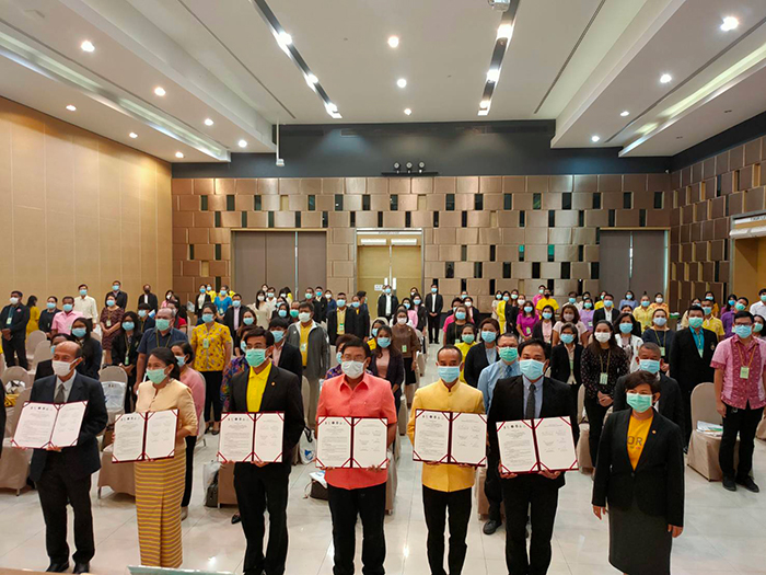 มหาวิทยาลัยราชภัฏสุราษฎร์ธานี(มรส.) ร่วมพิธีบันทึกข้อตกลงความร่วมมือ ระหว่าง ศูนย์คุณธรรม (องค์การมหาชน) กับ สํานักงานจังหวัดสุราษฎร์ธานี สํานักงานวัฒนธรรมจังหวัดสุราษฎร์ธานี มหาวิทยาลัยสงขลานครินทร์ วิทยาเขตสุราษฎร์ธานี และมหาวิทยาลัยตาปี เพื่อร่วมกันดําเนินงานส่งเสริม สนับสนุน กระบวนการด้านวิชาการเพื่อสนับสนุนการขับเคลื่อนจังหวัดคุณธรรม จังหวัดสุราษฎร์ธานี ซึ่งต่อไปในบันทึก ข้อตกลงนี้เรียกว่า “ภาคีความร่วมมือด้านวิชาการ” ณ ห้องประชุมแกรนด์บอลรูม 1 โรงแรมบรรจงบุรี ตําบลมะขามเตี้ย อําเภอเมือง จังหวัดสุราษฎร์ธานี