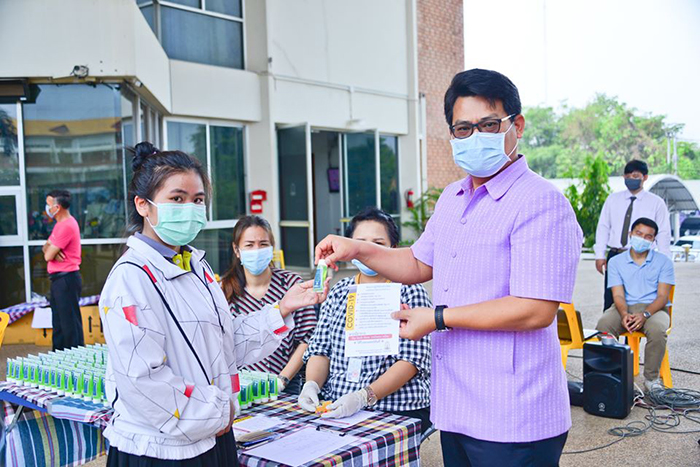 รองศาสตราจารย์ ดร.ประยุกต์ ศรีวิไล กล่าวว่ามหาวิทยาลัยมหาสารคาม มีความห่วงใยนิสิตที่จะต้องเดินทางกลับภูมิลำเนาโดยรถสาธารณะ จึงสนับสนุนงบประมาณของมหาวิทยาลัยมหาสารคาม ให้กับ คณะเภสัชศาสตร์ มหาวิทยาลัยมหาสารคาม ในการผลิตเจลแอลกอฮอล์ 35 มิลลิลิตร จำนวน 6,000 หลอด ที่มีส่วนผสมของเอทานอล กลีเซอรีน คาร์โบพอล 940 เพื่อตอบรับนโยบายเฝ้าระวังการระบาดของของเชื้อโรค COVID-19 ตามประกาศมหาวิทยาลัยมหาสารคาม เรื่อง มาตรการป้องกันการแพร่ระบาดของเชื้อโรค COVID-19 ฉบับที่ 5 นิสิตสามารถนำบัตรนิสิตมาลงทะเบียนรับเจล คนละ 1 หลอด ได้ที่ บริเวณลานชั้น 1 อาคารบรมราชกุมารี มหาวิทยาลัยมหาสารคาม ในวันที่ 19 มีนาคม 2563 เวลา 10.00 – 16.30 น. หรือจนกว่าเจลจะหมด