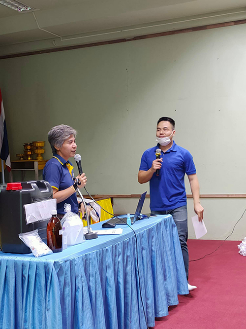 อาจารย์กาญจนา พิศาภาค หัวหน้ายุทธศาสตร์การพัฒนาผลิตภัณฑ์ทางวิทยาศาสตร์ พร้อมด้วย ดร.สุนทรา เฟื่องฟุ้ง อาจารย์กัญญา กอแก้ว และนายสุรัช ประหยัด อาจารย์และบุคลากรประจำคณะวิทยาศาสตร์และเทคโนโลยี มหาวิทยาลัยเทคโนโลยีราชมงคลสุวรรณภูมิ เป็นวิทยากรบรรยายให้ความรู้เกี่ยวกับการป้องกันโรคติดเชื้อไวรัสโคโรนา 2019 Covid -19 พร้อมฝึกทำเจลแอลกอฮอล์ล้างมือให้กับผู้นำชุมชน อาสาสมัครสาธารณสุขประจำหมู่บ้านและครูโรงเรียนในพื้นที่ เพื่อนำความรู้ไปถ่ายทอดให้กับชาวบ้านในชุมชนต่อไป ณ องค์การบริหารส่วนตำบลปากกราน จังหวัดพระนครศรีอยุธยา