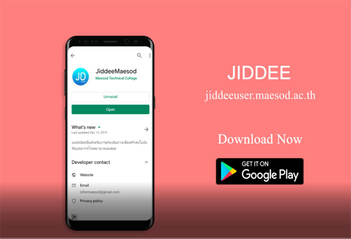 นายณรงค์ แผ้วพลสง เลขาธิการคณะกรรมการการอาชีวศึกษา เปิดเผยว่า แอปพลิเคชันจิตดี (Jiddee) ระบบช่วยเหลือดูแลผู้ที่มีภาวะซึมเศร้า เป็นผลงานสิ่งประดิษฐ์ด้านการแพทย์หรือบรรเทาสาธารณภัยของ ทีมนักศึกษาวิทยาลัยเทคนิคแม่สอด จังหวัดตากที่ได้รับรางวัลชนะเลิศ ระดับจังหวัด (จังหวัดตาก) และรางวัลรองชนะเลิศอันดับ 2 และรางวัล Honor Awards ระดับภาค (ภาคเหนือ) จากงานประกวดสิ่งประดิษฐ์ของคนรุ่นใหม่ ประจำปีการศึกษา 2562 โดยสำนักงานคณะกรรมการการอาชีวศึกษา มุ่งมั่นในการพัฒนายกระดับคุณภาพการเรียนการสอนตามนโยบายของรัฐบาลเพื่อเตรียมกำลังคนสู่ศตวรรษที่ 21 โดยมุ่งเน้นให้นักเรียน นักศึกษาอาชีวศึกษา ได้คิด วิเคราะห์ สร้างสรรค์ผลงานนวัตกรรมสิ่งประดิษฐ์ให้มีคุณภาพ ทันสมัย ได้มาตรฐาน สามารถนำไปใช้งานได้จริง ตรงตามความต้องการของผู้ใช้ในชุมชน สังคม และภาคอุตสาหกรรม
