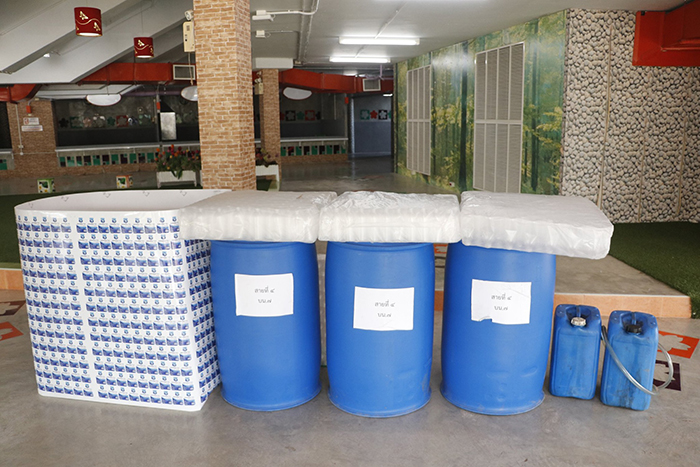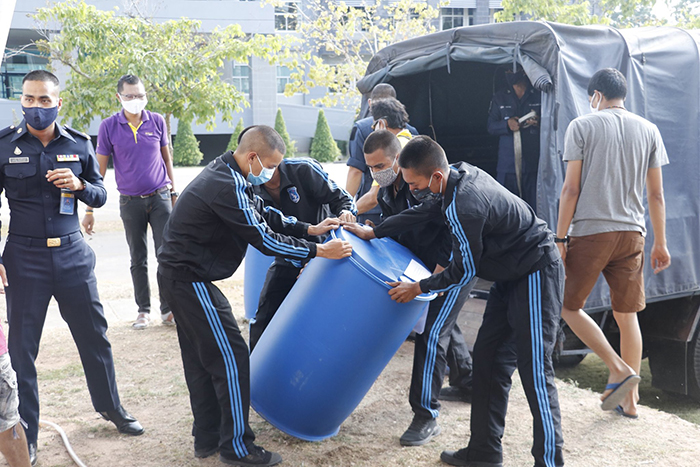 ผศ.ดร. วัฒนา รัตนพรหม รักษาราชการแทนอธิการบดีมหาวิทยาลัยราชภัฎสุราษฎร์ธานี กล่าวว่า มหาวิทยาลัยพยายามที่จะดำเนินการป้องกันการแพร่กระจายเชื้อโคโรนาไวรัส โดยการผลิตเจลล้างมือเพื่อที่จะแจกจ่ายให้กับบุคลากรในมหาวิทยาลัยรวมถึงส่วนราชการ ประชาชนในจังหวัดสุราษฎร์ธานี โดยได้เริ่มแจกจ่ายตั้งแต่ต้นเดือนกุมภาพันธ์ที่ผ่านมา จนในขณะนี้มหาวิทยาลัยก็ยังคงทำมาเป็นเวลาต่อเนื่อง โดยในครั้งนี้ได้รับการสนับสนุนสารตั้งต้นสำคัญในการผลิตแอลกอฮอล์75 % และสเปรย์แอลกอฮอล์ จากนาวาอากาศเอก แมนสรวง สุวรรณ ผู้บังคับการกองบิน 7 จำนวน 600 ลิตร เพื่อใช้ในการทำความสะอาดพื้นผิวและวัสดุอุปกรณ์ ให้กับข้าราชการสังกัดกองบิน 7 และประชาชนในจังหวัดสุราษฎร์ธานี