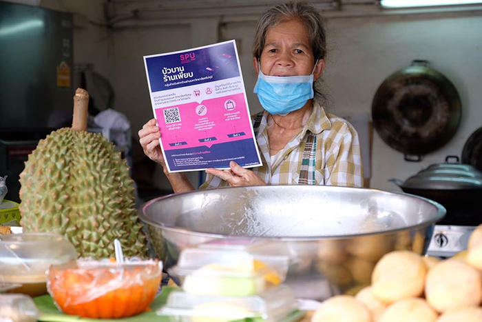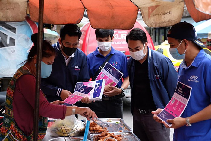 ร่วมด้วยช่วยกัน “เราจะไม่ทิ้งใครไว้ข้างหลัง” มหาวิทยาลัยศรีปทุม ลงพื้นที่ชุมชนบริเวณโดยรอบ มหาวิทยาลัย เพื่อประชาสัมพันธ์เชิญชวนให้ผู้ประกอบการ ร้านค้า ทั้งรายเล็ก รายใหญ่ ที่ล้วนได้รับผลกระทบจากการแพร่ระบาดของโควิด -19 ทำให้ไม่สามารถดำเนินธุรกิจตามปกติได้ SPU จึงได้เปิดช่องทางออนไลน์ ให้กับพ่อค้า แม่ค้า ได้นำร้านค้าของตัวเองมาฝากขายในตลาดออนไลน์บน “เพจเฟสบุ๊ค ที่ใช้ชื่อเพจว่า “บัวบานร้านเพียบ” ซึ่งทางมหาวิทยาลัยศรีปทุม ได้จัดทำขึ้น (Community Online สำหรับชุมชนในย่านมหาวิทยาลัย) เพื่อสนับสนุนและช่วยเหลือร้านค้าในชุมชนโดยรอบมหาวิทยาลัยศรีปทุม ให้มีช่องทางค้าขายเพื่อมีรายได้เพิ่มขึ้น