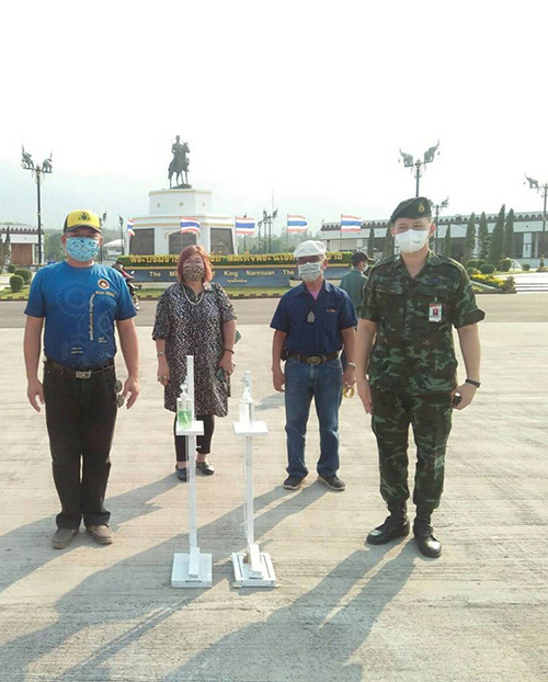 โดยคณะวิศวกรรมศาสตร์ มทร.ล้านนา ผู้จัดทำได้ส่งมอบเครื่องนี้ให้กับเทศบาลตำบลเหมืองง่า จังหวัดลำพูน ซึ่งเป็นผู้ที่ให้แนวคิดและโจทย์การใช้งาน ไปแล้ว 2 เครื่อง เพื่อนำไปให้บริการประชาชนผู้มาติดต่อราชการในเทศบาล เมื่อวันที่ 14 เมษายน 2563 ที่ผ่านมา และส่งมอบให้กับกองพลทหารราบที่ 7 อ.แม่ริม จ.เชียงใหม่ ในวันที่ 23 เมษายน 2563 อยู่ระหว่างการผลิตอีก 10 เครื่อง ตามความต้องการของเทศบาลตำบลเหมืองง่า ที่จะนำไปแจกจ่ายให้กับทุกชุมชนในตำบลนำไปใช้งานและกิจกรรมที่มีผู้คนรวมตัวกันจำนวนมาก