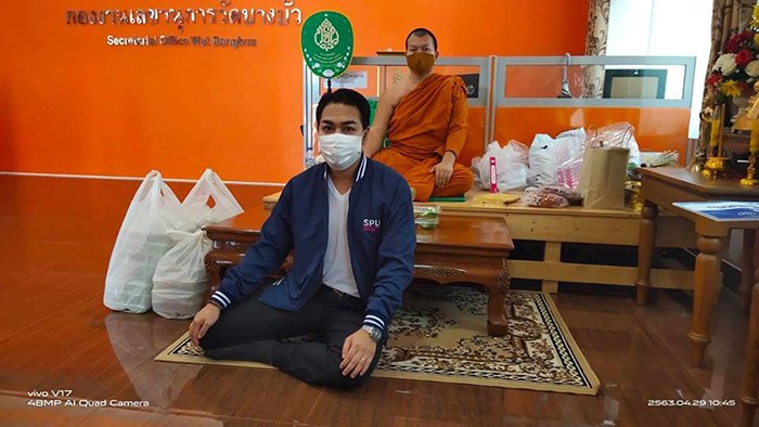 ทีมงาน SPU Care มหาวิทยาลัยศรีปทุม โดย อาจารย์ปิยะศักดิ์ รัตนภักดี ผู้อำนวยการสำนักงานอาคารสถานที่ กลุ่มงานโครงสร้างพื้นฐาน พร้อมด้วยบุคลากร นำภัตตาหาร ผลไม้ และเครื่องวัดอุณหภูมิ ถวายแด่พระภิกษุสงฆ์ วัดบางบัว และ วัดพระศรีมหาธาตุวรมหาวิหาร บางเขน กรุงเทพฯ เพื่อส่งต่อความห่วงใยไม่สิ้นสุด ช่วยเหลือและบรรเทาความเดือดร้อนจากผลกระทบวิกฤติ COVID-19 เมื่อเร็วๆนี้