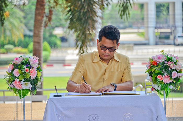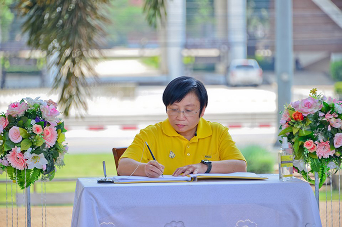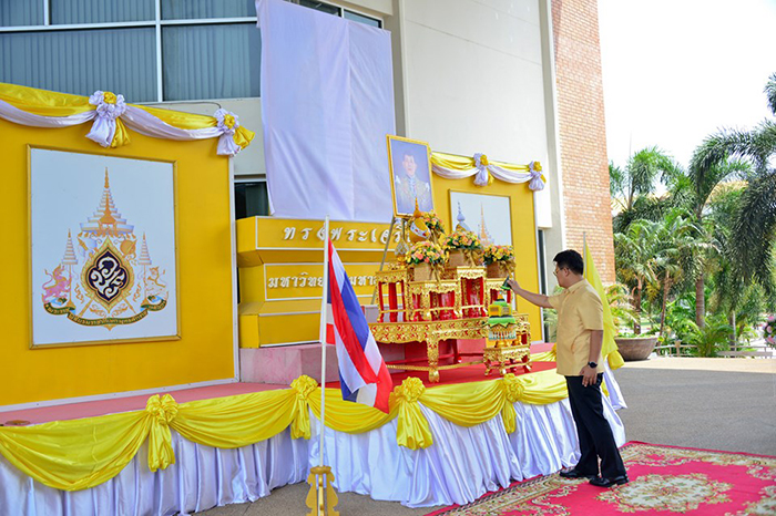 วันนี้ (5 พฤษภาคม 2563) ณ บริเวณลานอาคารบรมราชกุมารี มหาวิทยาลัยมหาสารคาม รองศาสตราจารย์ ดร.ประยุกต์ ศรีวิไล อธิการบดีมหาวิทยาลัยมหาสารคาม เป็นประธานเปิดกรวยดอกไม้ ถวายราชสักการะ และลงนามถวายพระพร หน้าพระบรมฉายาลักษณ์ พระบาทสมเด็จพระปรเมนทรรามาธิบดีศรีสินทรมหาวชิราลงกรณ พระวชิรเกล้าเจ้าอยู่หัว โดยมีผู้บริหาร คณาจารย์ บุคลากร และนิสิตมหาวิทยาลัยมหาสารคาม ร่วมลงนามถวายพระพรชัยมงคล พระบาทสมเด็จพระเจ้าอยู่หัว เนื่องในโอกาสมหามงคลวันฉัตรมงคล ประจำปี 2563 ซึ่งตรงกับวันที่ 4 พฤษภาคม 2563