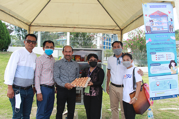 ** บุคลากรมหาวิทยาลัยทักษิณ ร่วมบริจาคเงินสนับสนุนซื้อตู้ และอาหารใส่ตู้