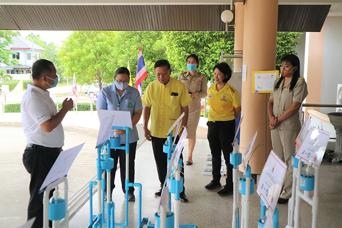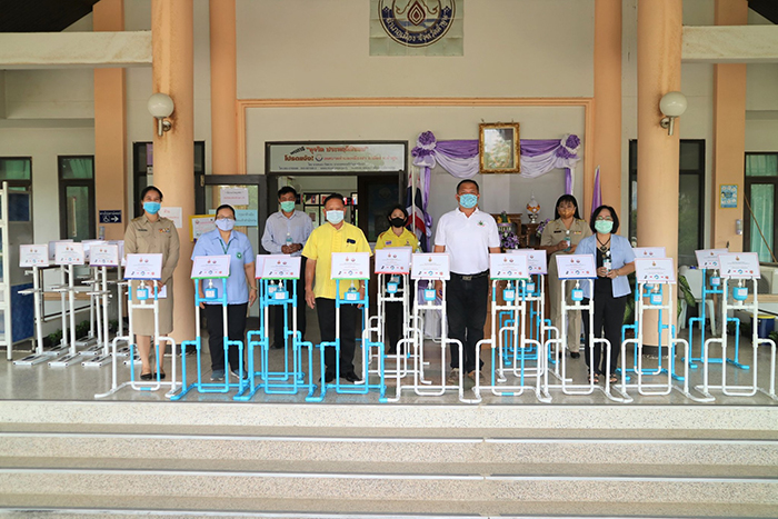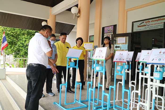 เมื่อวันที่ 8 มิถุนายน 2563 ผศ.ระบิน ปาลี อาจารย์ประจำคณะวิศวกรรมศาสตร์ มหาวิทยาลัยเทคโนโลยีราชมงคลล้านนา ผู้ออกแบบและสร้างเครื่องกดเจลแอลกอฮอล์แบบเหยียบเท้า ส่งมอบเครื่องกดเจลแอลกอฮอล์แบบเท้าเหยียบจำนวน 33 เครื่อง โดยนายคะนอง กัลป์ละหะ นายกเทศมนตรีตำบลเหมืองง่า ผู้รับมอบ เพื่อนำไปบริการประชาชนในสถานที่ชุมชนต่างๆ และส่งมอบต่อกาชาดจังหวัดลำพูน สำนักงานสาธารณสุขอำเภอเมืองลำพูนเพื่อนำใช้ในสถานที่ราชการและที่ชุมนุมชน ณ ที่ทำการเทศบาลตำบลเหมืองง่า อำเภอเมือง จังหวัดลำพูน