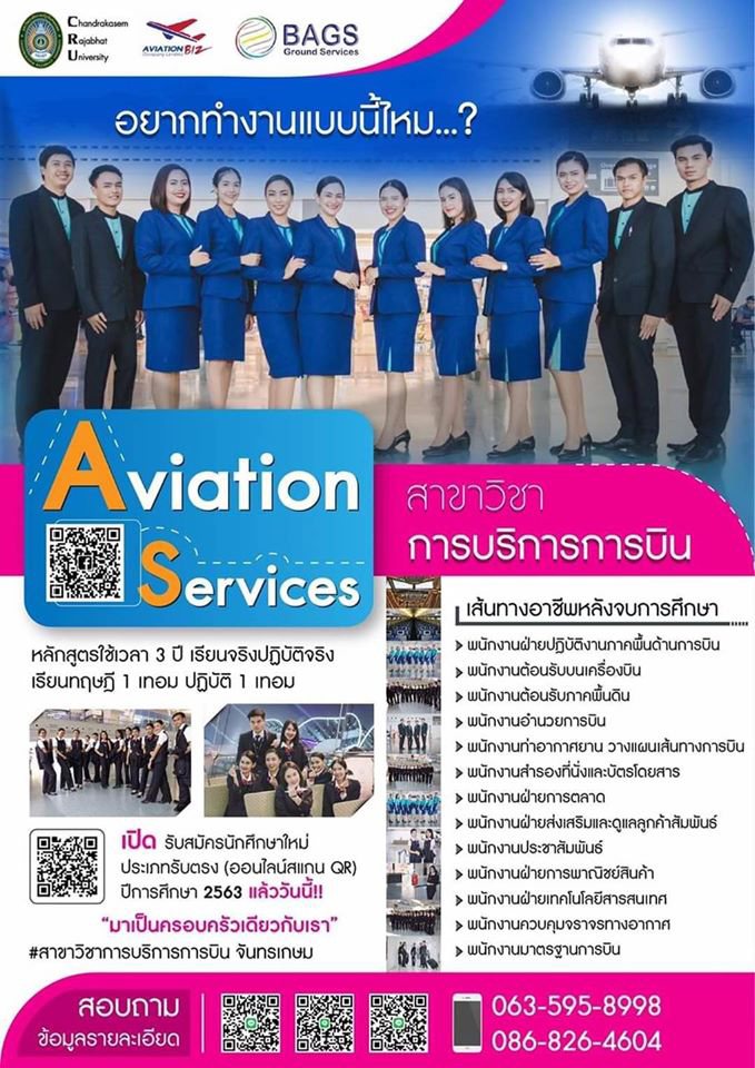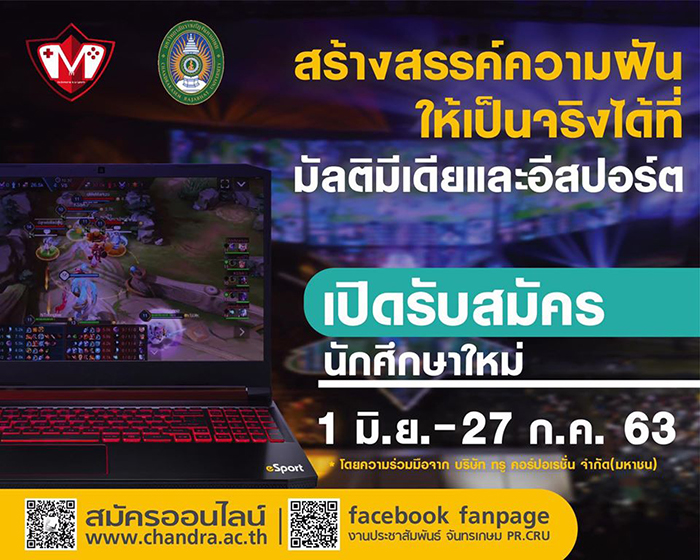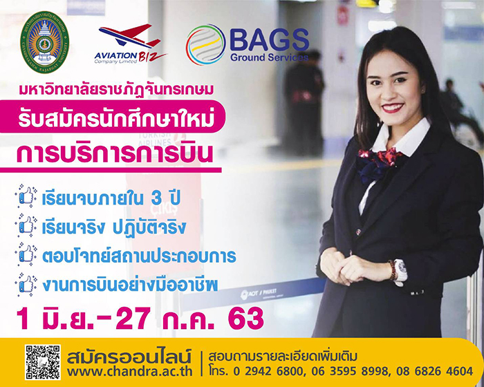 มหาวิทยาลัยราชภัฏจันทรเกษม (มจษ.) จับมือภาคเอกชนผลิตบัณฑิต เพื่อรองรับตลาดแรงงานในอนาคต เปิดรับสมัครนักศึกษาใหม่ภาคปกติ ระดับปริญญาตรี ประจำปีการศึกษา 2563 หลักสูตรศิลปศาสตรบัณฑิต สาขาวิชาการบริการการบิน โดยความร่วมมือกับ บริษัท แบ๊กสบริการภาคพื้น จำกัด และ บริษัท เอวิเอชั่นบิซ จำกัด เน้นผลิตบัณฑิตที่มีทั้งความรู้อย่างเข้มข้นทั้งภาคทฤษฎีและภาคปฏิบัติกับเครือข่ายการบินอย่างครบถ้วน ให้มีทักษะพร้อมสำหรับการทำงานแบบมืออาชีพ ใช้เวลาเรียน 3 ปี นอกจากนี้ ยังร่วมมือกับบริษัท ทรู คอร์ปอเรชั่น จำกัด (มหาชน) เปิดหลักสูตรวิทยาศาสตรบัณฑิต สาขาวิชามัลติมีเดียและอีสปอร์ต ผู้สนใจสมัครได้ตั้งแต่ วันนี้ – 27 ก.ค. 63 ที่ http://eadmission.chandra.ac.th/ สอบถามรายละเอียดได้ที่ Facebook : งานประชาสัมพันธ์ จันทรเกษม PR.CRU