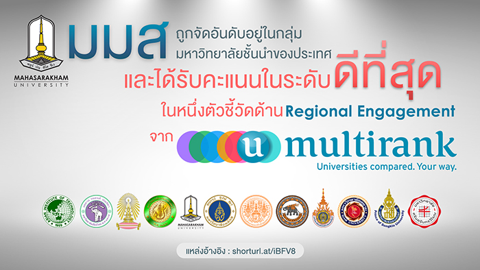 มหาวิทยาลัยมหาสารคามมีความภาคภูมิใจเป็นอย่างยิ่งที่ได้รับการจัดอันดับ U-Multirank ในปีนี้เป็นปีแรก โดยผลการจัดอันดับดังกล่าวเป็นอีกหนึ่งภาพสะท้อนสำคัญที่แสดงให้เห็นถึงการพัฒนาอย่างต่อเนื่องของมหาวิทยาลัยมหาสารคาม ทำให้ได้รับการจัดอันดับและนำไปสู่การเป็นมหาวิทยาลัยชั้นนำของประเทศไทยและของเอเชียต่อไป