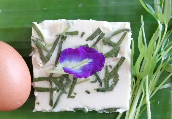 สำหรับความพิเศษของเวิร์คช็อปนี้ เป็นสูตรลับเฉพาะของวิทยากร ที่เลือกใช้ประโยชน์จากไข่ขาวแหล่งโปรตีนคุณภาพดี มีประโยชน์หลากหลาย ให้คุณค่าทางโภชนาการสูง มาแปรรูปเป็นเต้าหู้โฮมเมด เมนูโปรดของคนในบ้าน โดยผสมกับน้ำนมถัวเหลือง ดอกเกลือ และมีการเพิ่มเทคเจอร์ด้วยการใส่ต้นอ่อนผักบุ้ง ที่อุดมด้วยคุณค่าทางโภชนาการ ผสมสูตรจนได้รสชาติแสนอร่อย มีความเป็นเอกลักษณ์เฉพาะ นุ่ม หนึบ ละมุนลิ้น ทำง่าย และดีต่อสุขภาพ เพราะวัตถุดิบที่ใช้ออร์แกนิก 100%