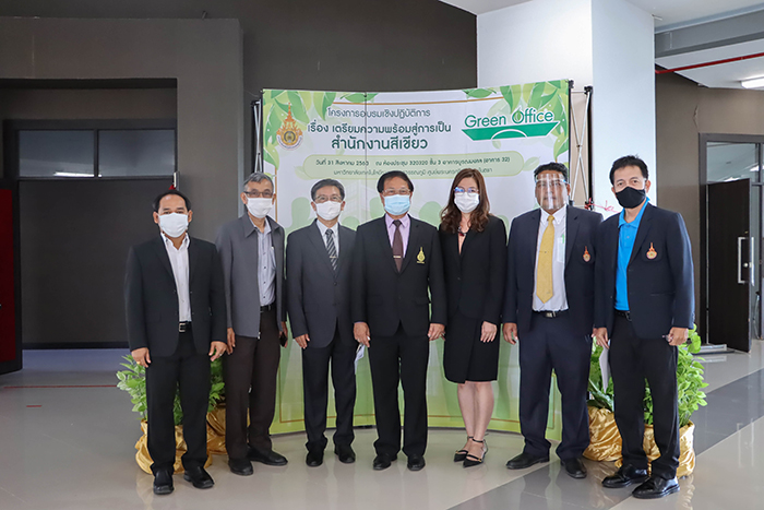ผู้ช่วยศาสตราจารย์ไพศาล บุรินทร์วัฒนา อธิการบดีมหาวิทยาลัยเทคโนโลยีราชมงคลสุวรรณภูมิ (มทร.สุวรรณภูมิ) เป็นประธานเปิดโครงการอบรมเชิงปฎิบัติการ เรื่อง “การเตรียมความพร้อมสู่การเป็นสำนักงานสีเขียว (Green Office) โดยได้รับเกียรติจาก รองศาสตราจารย์ ดร.สยาม อรุณศรีมรกต อาจารย์ประจำคณะสิ่งแวดล้อมและทรัพยากรศาสตร์ มหาวิทยาลัยมหิดล เป็นวิทยากรบรรยายให้ความรู้ เรื่อง แนวทางการพัฒนาสำนักงานสีเขียว เพื่อให้บุคลากรในมหาวิทยาลัยใช้พลังงานอย่างรู้คุณค่าและเป็นมิตรกับสิ่งแวดล้อม และยกระดับมาตรฐานสู่สำนักงานสีเขียว Green Office จัดโดยกองกลาง สำนักงานอธิการบดี ณ ห้องประชุม ๓๒๐๓๒๐ ชั้น ๓ อาคารบูรณมงคล มทร.สุวรรณภูมิ ศูนย์พระนครศรีอยุธยา หันตรา