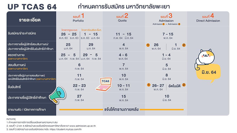 ทั้งนี้วิทยาลัยการจัดการ จัดการเรียนการสอนระดับบัณฑิตศึกษาณ กรุงเทพมหานคร และในปีการศึกษา 2564 ได้เริ่มเปิดรับสมัครเข้าศึกษาต่อในมหาวิทยาลัยพะเยา ระดับปริญญาตรี (TCAS 64) รอบที่ 1 รับสมัครทั่วประเทศ โดยโครงการรับตรงมหาวิทยาลัยพะเยา (โควตาครูแนะแนว) จำนวน 3,870 คน นักเรียนสมัครเข้าศึกษา ผ่านเว็บไซต์ www.admission.up.ac.th และส่งใบสมัครท่ีครูแนะแนวของโรงเรียน ระหว่างวันที่ 26 ตุลาคม – 25 ธันวาคม 2563 สอบถามรายละเอียดเพิ่มเติมได้ที่ งานรับเข้าศึกษา กองบริการการศึกษา มหาวิทยาลัยพะเยา โทร 0 5446 6666 ต่อ 1270-3 หรือที่เว็บไซต์ http://admission.up.ac.th กรอกใบสมัครได้ที่เว็บไซต์ http://reg.up.ac.th/app/admission/apply1/NewAccount