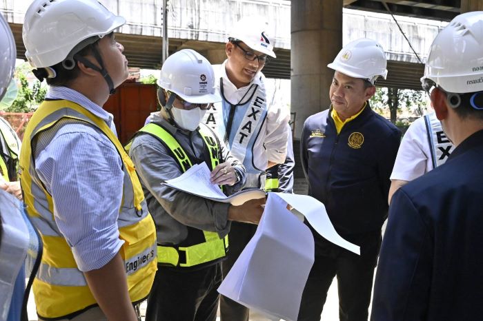 นายภุชงค์ กล่าวเพิ่มเติมว่า การตรวจความปลอดภัยในการทำงานวันนี้ เพื่อให้สถานประกอบกิจการปฏิบัติให้ถูกต้องตามพระราชบัญญัติความปลอดภัย อาชีวอนามัย และสภาพแวดล้อมในการทำงาน พ.ศ.2554 และกฎกระทรวงที่เกี่ยวข้อง โดยมุ่งเน้น กฎเหล็ก 5 ข้อ (5 Golden Rules) ตามแคมเปญ Safe Cons. Together 90 Days ประกอบด้วย 1. ต้องกำหนดเขตก่อสร้างและเขตอันตรายชัดเจน เพื่อป้องกันอันตราย แก่แรงงานและประชาชนที่อยู่ในบริเวณใกล้เคียง 2. การออกแบบโครงสร้างรับน้ำหนักต้องเป็นไปตามมาตรฐาน เพื่อลดความเสี่ยงต่อการพังถล่มจากข้อบกพร่องทางวิศวกรรม 3. เครื่องจักรหนักต้องได้รับการตรวจสอบตามหลักวิศวกรรม เพื่อให้มั่นใจว่าอุปกรณ์ที่ใช้ในงานก่อสร้างมีความปลอดภัยและพร้อมใช้งาน 4. เน้นการปฏิบัติหน้าที่ของผู้ควบคุมงานและผู้อนุมัติ ต้องมีการตรวจสอบและกำกับดูแลให้เป็นไปตามมาตรฐานความปลอดภัยอย่างเข้มงวด 5. ลูกจ้างต้องสวมใส่อุปกรณ์คุ้มครองความปลอดภัยส่วนบุคคลอย่างครบถ้วน