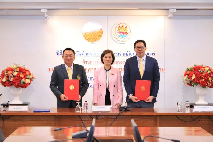 29 กันยายน 2568 นางสาวตรีนุช เทียนทอง รัฐมนตรีว่าการกระทรวงแรงงาน เป็นประธานในพิธีลงนามบันทึกความเข้าใจความร่วมมือทางวิชาการด้านการพัฒนาฝีมือแรงงาน ระหว่าง กรมพัฒนาฝีมือแรงงาน กับ มหาวิทยาลัยธรรมศาสตร์ โดยมีนายเดชา พฤกษ์พัฒนรักษ์ อธิบดีกรมพัฒนาฝีมือแรงงาน และศาสตราจารย์ ดร.ศุภสวัสดิ์ ชัชวาลย์ อธิการบดีมหาวิทยาลัยธรรมศาสตร์ ลงนาม พร้อมนายภัทรวุธ เภอแสละ รองอธิบดีกรมพัฒนาฝีมือแรงงาน และรองศาสตราจารย์ ดร.ม.ล.พินิตพันธุ์ บริพัตร รองอธิการบดีฝ่ายวิจัยและนวัตกรรม มหาวิทยาลัยธรรมศาสตร์ ลงนามเป็นพยาน นอกจากนี้ มีผู้บริหารกระทรวงแรงงาน ผู้บริหารกรมพัฒนาฝีมือแรงงาน ผู้บริหารมหาวิทยาลัยธรรมศาสตร์ และผู้เกี่ยวข้อง ร่วมเป็นเกียรติในพิธี ณ ห้องประชุมประกอบ หุตะสิงห์ ชั้น 3 อาคารอเนกประสงค์ 1 มหาวิทยาลัยธรรมศาสตร์ ท่าพระจันทร์ กรุงเทพมหานคร