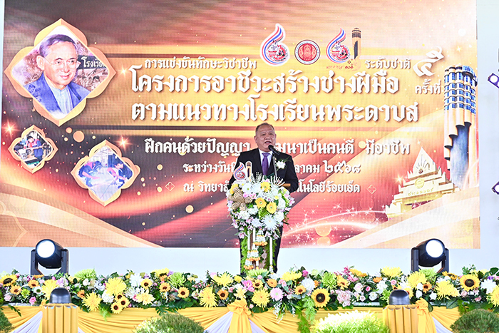 นายยศพล เวณุโกเศศ เลขาธิการคณะกรรมการการอาชีวศึกษา เปิดเผยว่า โครงการอาชีวะสร้างช่างฝีมือ ตามแนวทางโรงเรียนพระดาบส เป็นโครงการของสำนักงานคณะกรรมการการอาชีวศึกษา (สอศ.) ในการสร้างโอกาสทางการศึกษาและอาชีพให้แก่เด็ก เยาวชน และประชาชน ในพื้นที่ห่างไกล ชายแดน ชายขอบ เขตชนบท และเขตเศรษฐกิจพิเศษ ที่ประสบปัญหาความยากจนและขาดโอกาสทางการศึกษา ทั้งนี้ ศาสตราจารย์ นฤมล ภิญโญสินวัฒน์ รัฐมนตรีว่าการกระทรวงศึกษาธิการ ให้ความสำคัญกับโครงการอาชีวะสร้างช่างฝีมือ ตามแนวทางโรงเรียนพระดาบส โดยมีนโยบายส่งเสริมการขยายโอกาสทางการศึกษาวิชาชีพสู่กลุ่มเป้าหมายในพื้นที่ห่างไกลให้ครอบคลุมมากยิ่งขึ้น พร้อมสนับสนุนการพัฒนาหลักสูตรและการเรียนการสอนที่เน้นการปฏิบัติจริง เพื่อให้ผู้เรียนมีทักษะวิชาชีพที่สอดคล้องกับความต้องการของตลาดแรงงาน อีกทั้งยังมุ่งเน้นการปลูกฝังคุณธรรม จริยธรรม และค่านิยมที่ดีให้แก่เยาวชน เพื่อเป็นกำลังสำคัญในการพัฒนาประเทศอย่างยั่งยืน ปัจจุบันมีสถานศึกษาในสังกัด สอศ. ที่เข้าร่วมโครงการทั้งสิ้น 30 แห่ง กระจายอยู่ทั่วทุกภูมิภาค ได้แก่ ภาคเหนือ 8 แห่ง ภาคกลาง 7 แห่ง ภาคตะวันออก 1 แห่ง ภาคตะวันออกเฉียงเหนือ 9 แห่ง และภาคใต้ 5 แห่ง โดยจัดการเรียนการสอนหลักสูตรประกาศนียบัตรวิชาชีพ ระยะเวลา 1 ปี (12 เดือน) เน้นการฝึกทักษะวิชาชีพควบคู่กับการปลูกฝังคุณธรรม จริยธรรม ผู้เรียนที่จบหลักสูตรจะได้รับประกาศนียบัตรจากสำนักงานคณะกรรมการการอาชีวศึกษา และสามารถสอบผ่านมาตรฐานฝีมือแรงงานได้ทุกคน การจัดการแข่งขันทักษะวิชาชีพในครั้งที่ 5 นี้ เป็นเวทีให้ผู้เข้ารับการฝึกอบรมได้แสดงออกถึงความรู้ ความสามารถ ทักษะ และความชำนาญในสาขาวิชาชีพ เป็นการส่งเสริมการแลกเปลี่ยนเรียนรู้ประสบการณ์ในการจัดการเรียนการสอนและการพัฒนาหลักสูตร เพื่อมุ่งสู่การยกระดับคุณภาพการอาชีวศึกษา อีกทั้งยังเป็นการสร้างความรัก ความสามัคคี ในหมู่คณะ ให้รู้แพ้ รู้ชนะ และรู้อภัย