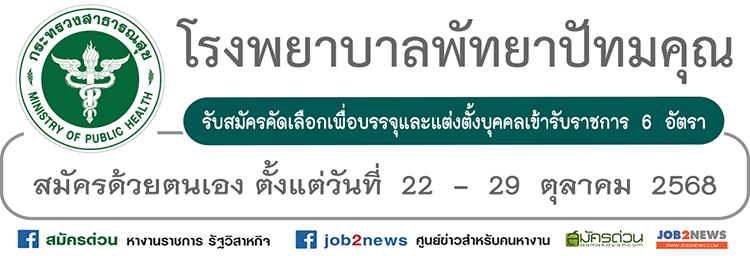 พยาบาลพัทยาปัทมคุณ โทรศัพท์ 0-3842-8135 ระยะเวลารับสมัคร ตั้งแต่วันที่ 22 ตุลาคม 2568 ถึงวันที่ 29 ตุลาคม 2568 ในวัน