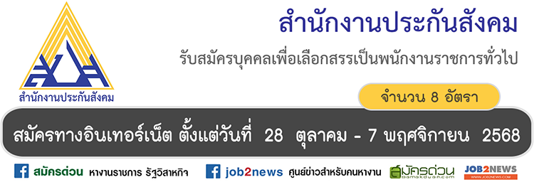 ประกาศสำนักงานประกันสังคม เรื่อง รับสมัครบุคคลเพื่อเลือกสรรเป็นพนักงานราชการทั่วไป โดยมีรายละเอียดดังต่อไปนี้