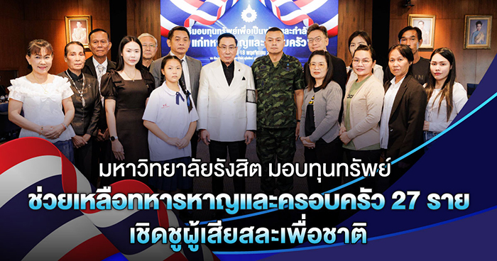 ดร.อาทิตย์ อุไรรัตน์ อธิการบดีมหาวิทยาลัยรังสิต กล่าวว่า งานวันนี้จัดขึ้นท่ามกลางบรรยากาศแห่งความระลึกถึง ความเคารพ และความกตัญญูต่อทหารผู้ยืนหยัดปกป้องผืนแผ่นดินไทยด้วยชีวิต เกียรติ และศักดิ์ศรี ซึ่งทุนทรัพย์ที่มอบให้ครอบครัวทหารทุกนาย จำนวน 27 ราย ไม่ได้มีความหมายเพียงด้านการช่วยเหลือทางการเงิน แต่เป็น “สัญลักษณ์ของหัวใจ” ที่สะท้อนความรับผิดชอบร่วมกันของสังคมไทยที่ไม่ทอดทิ้งผู้ปกป้องบ้านเมือง และแสดงความอาลัยต่อทหารกล้าจำนวน 16 นาย ที่เสียชีวิตระหว่างปฏิบัติหน้าที่เพื่อประเทศชาติ โดยความสงบสุขที่ประชาชนได้รับในวันนี้เกิดขึ้นจากต้นทุนอันล้ำค่าของผู้เสียสละเหล่านี้ และความกล้าหาญของพวกเขาคือความทรงจำที่แผ่นดินไทยจะไม่มีวันลืม